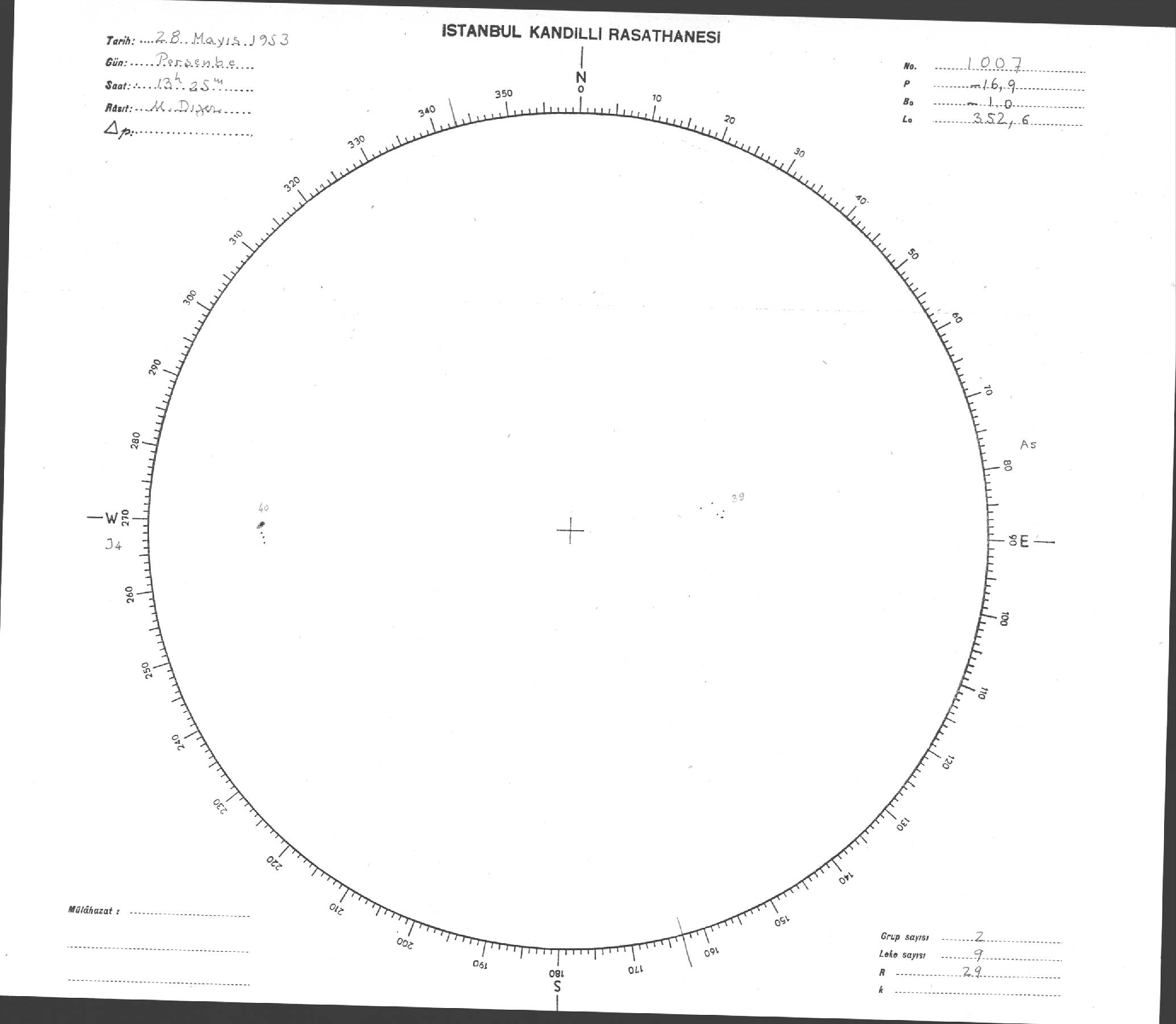Güneş Lekesi Çizimi - 28.05.1953