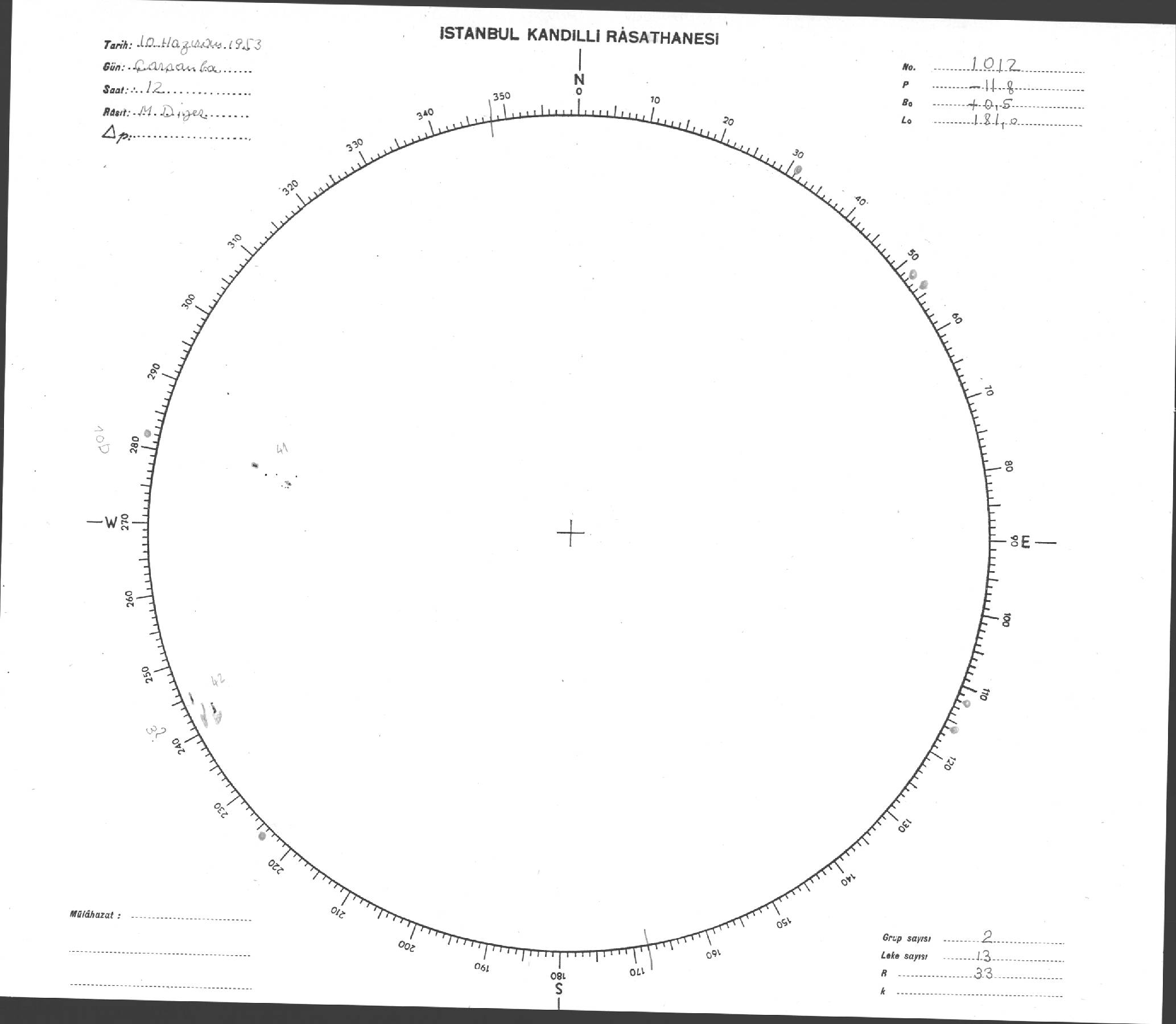 Güneş Lekesi Çizimi - 10.06.1953