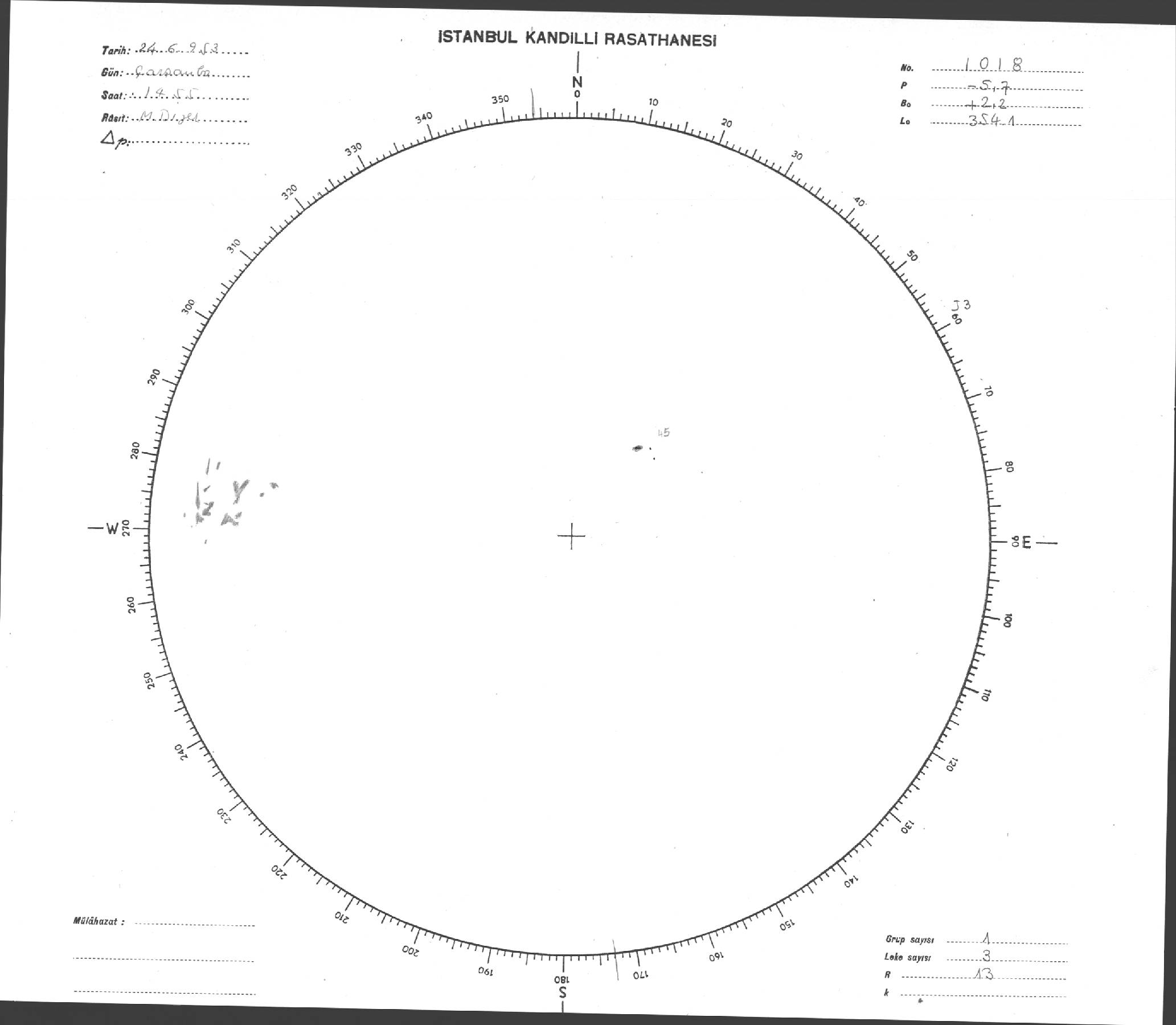 Güneş Lekesi Çizimi - 24.06.1953