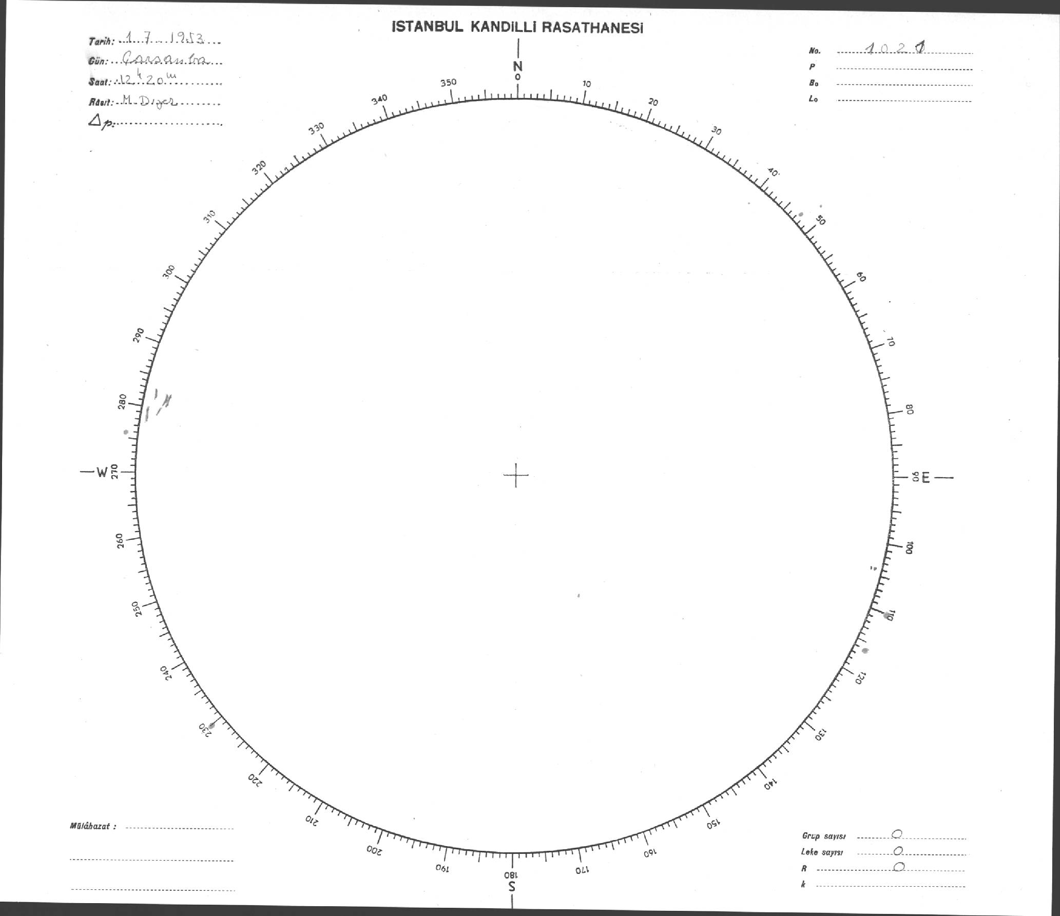 Güneş Lekesi Çizimi - 01.07.1953
