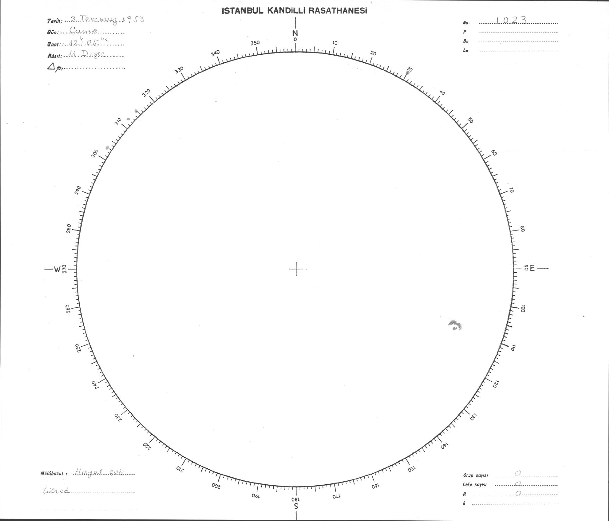 Güneş Lekesi Çizimi - 03.07.1953