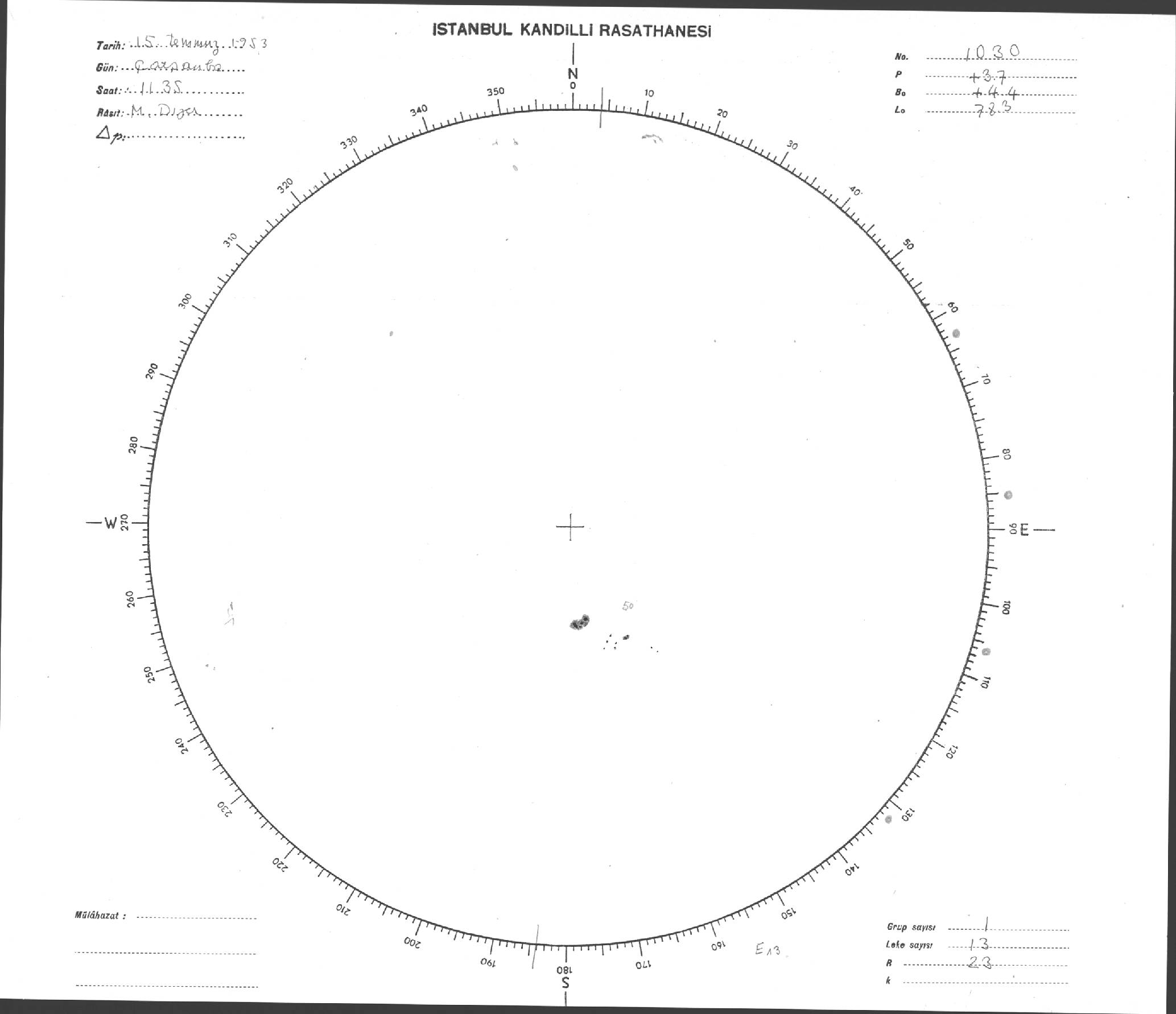 Güneş Lekesi Çizimi - 15.07.1953