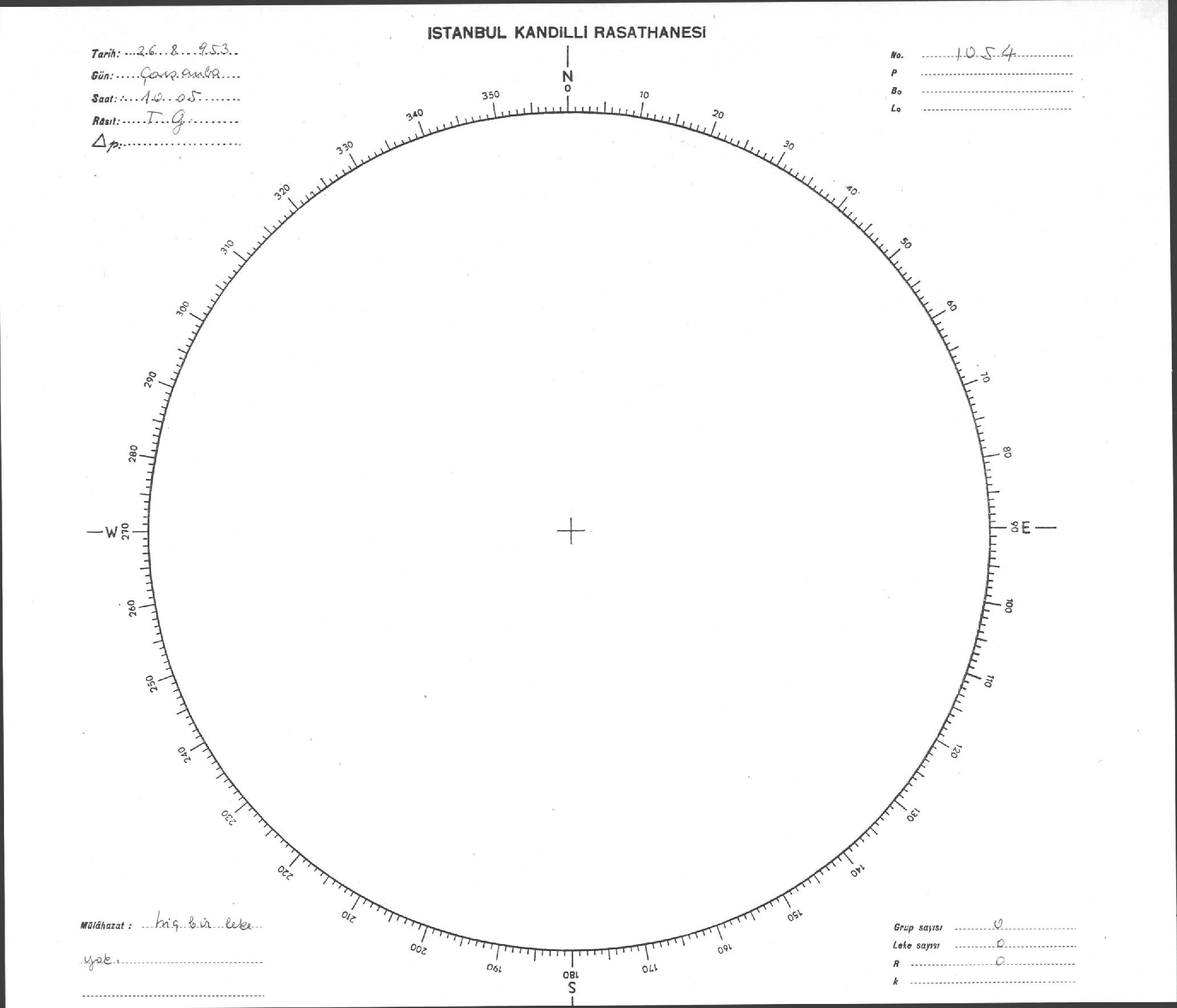 Güneş Lekesi Çizimi - 26.08.1953