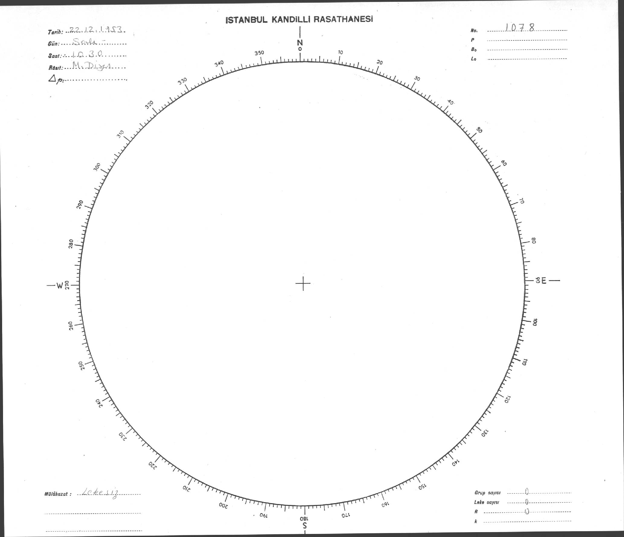 Güneş Lekesi Çizimi - 22.12.1953