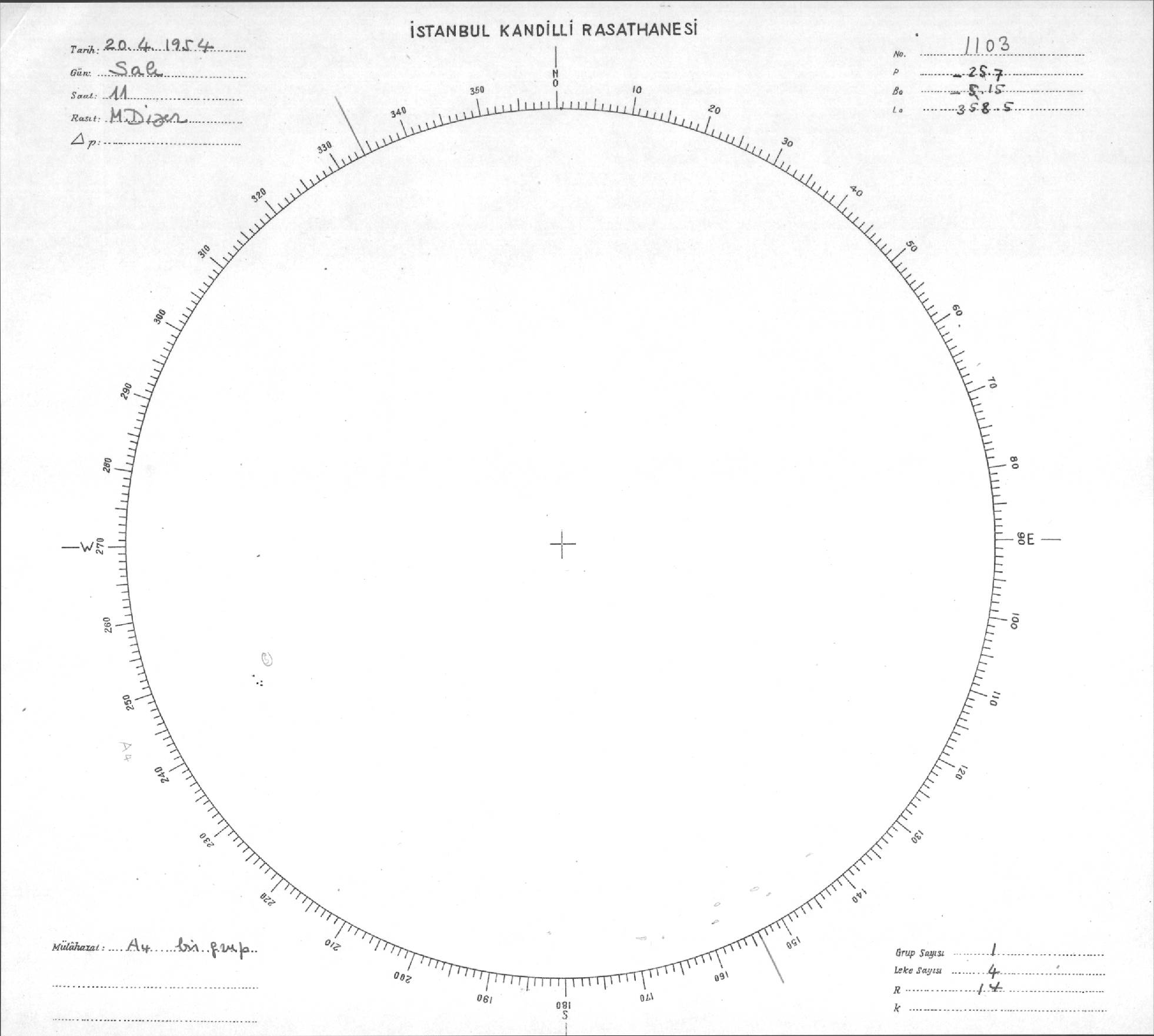 Güneş Lekesi Çizimi - 20.04.1954