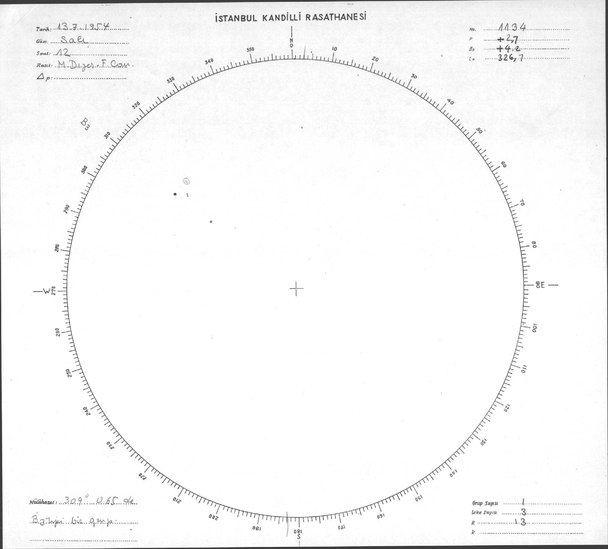 Güneş Lekesi Çizimi - 13.07.1954