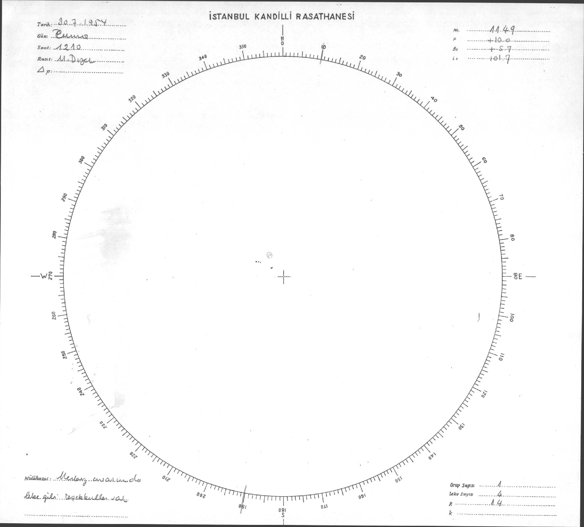 Güneş Lekesi Çizimi - 30.07.1954