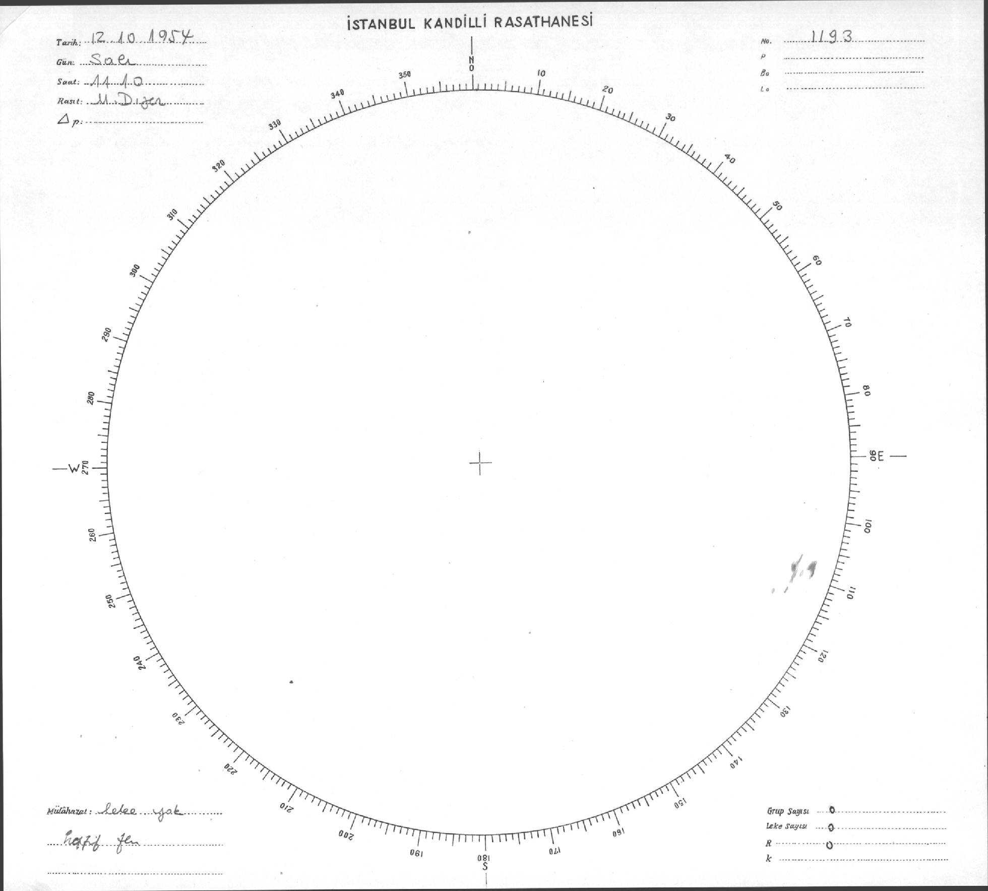 Güneş Lekesi Çizimi - 12.10.1954