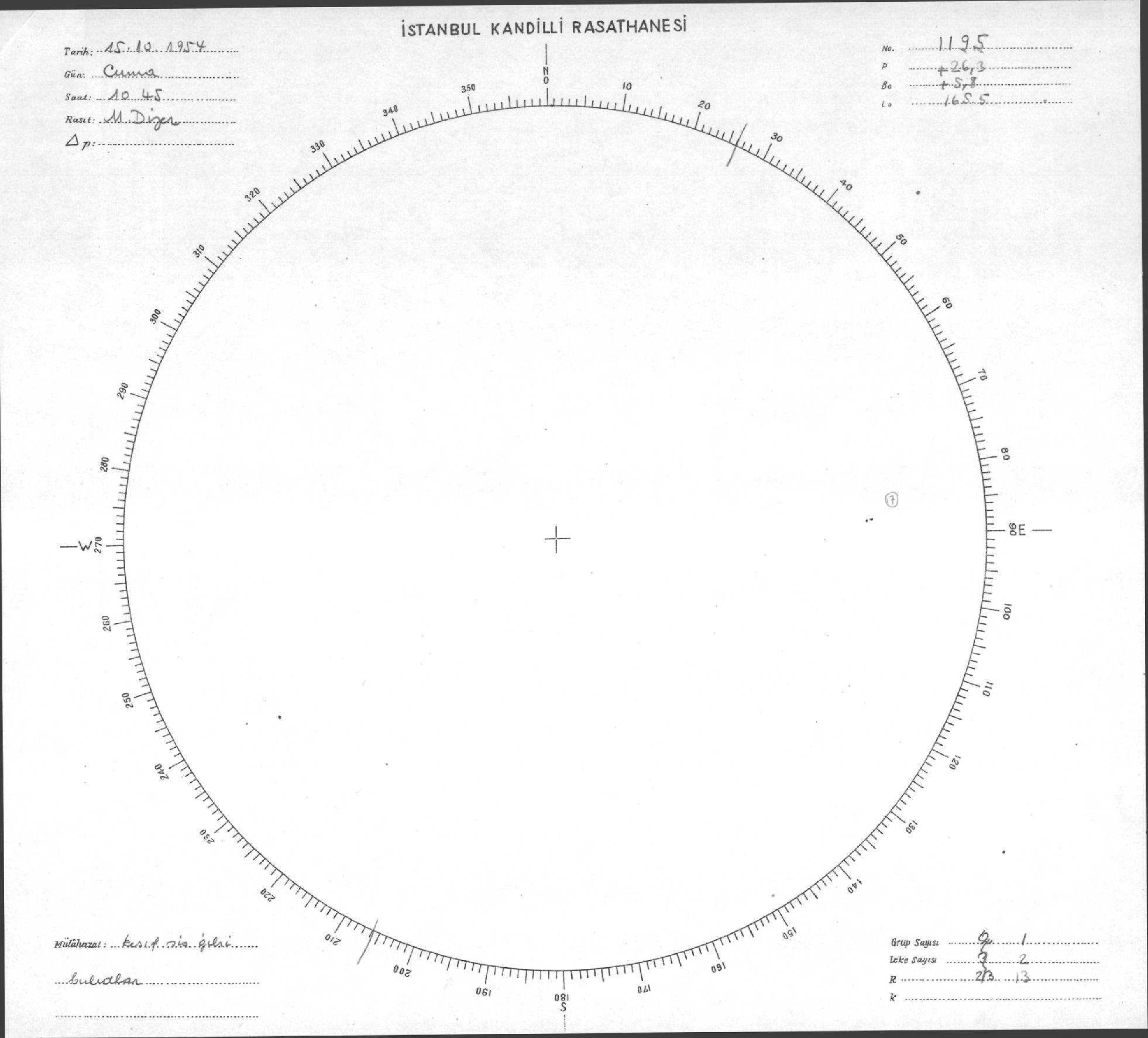 Güneş Lekesi Çizimi - 15.10.1954