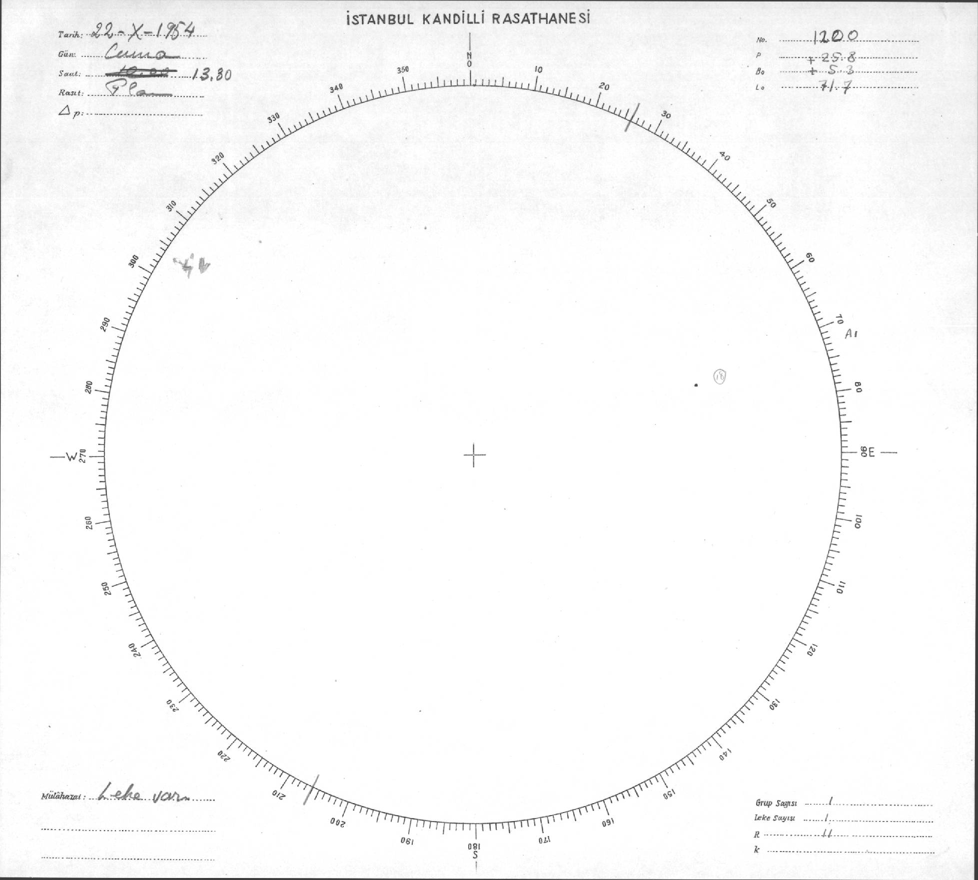 Güneş Lekesi Çizimi - 22.10.1954