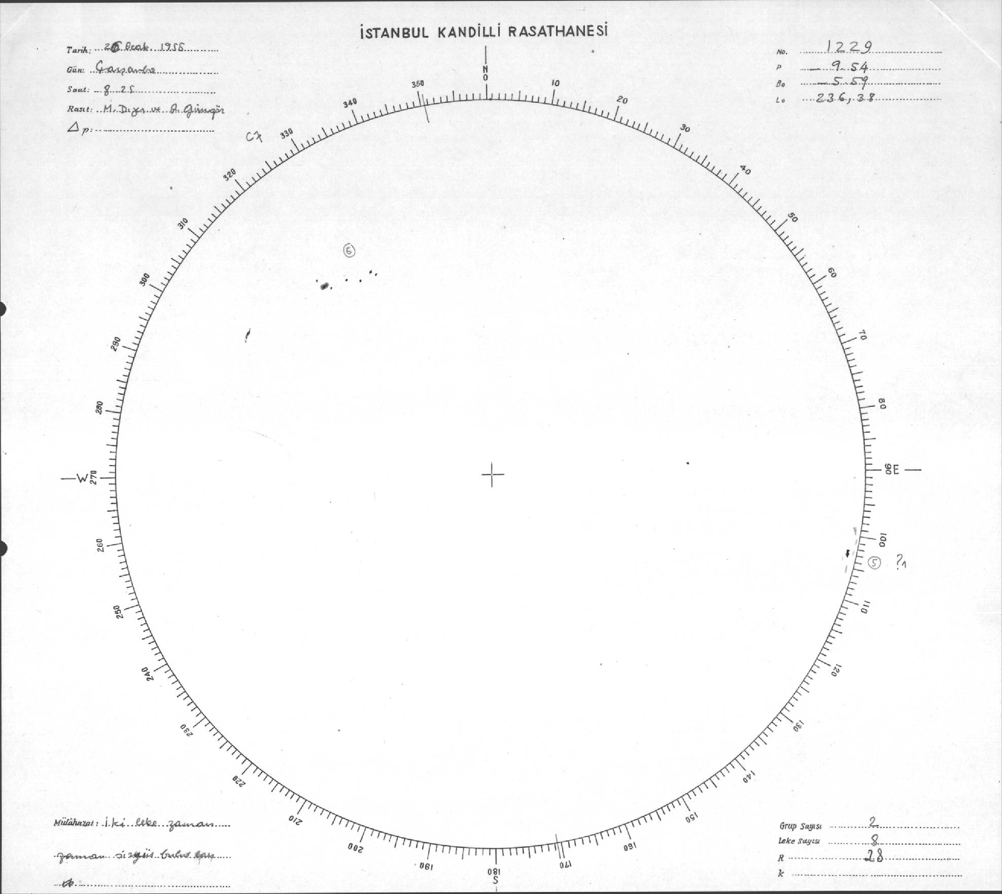 Güneş Lekesi Çizimi - 26.01.1955