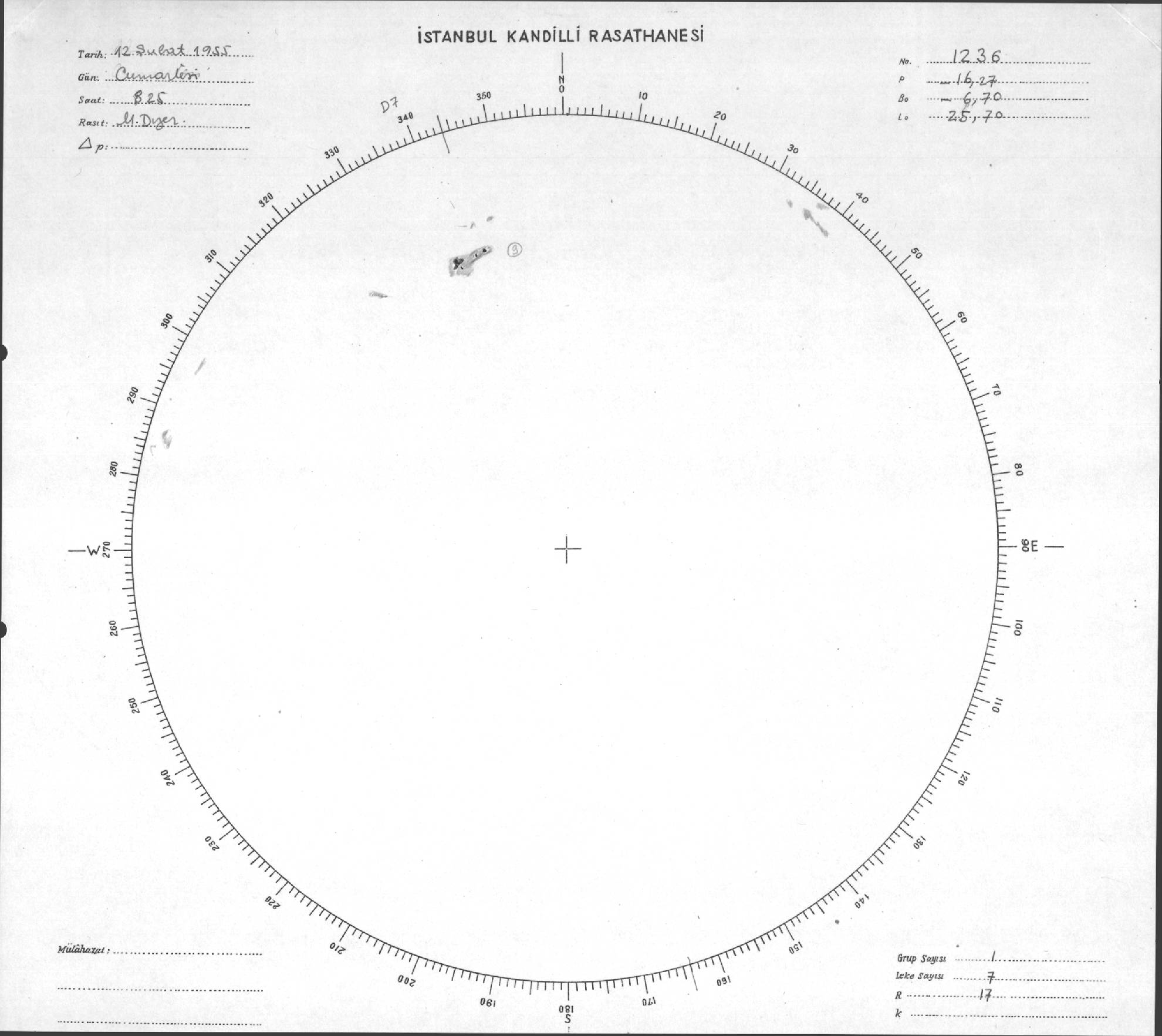 Güneş Lekesi Çizimi - 12.02.1955