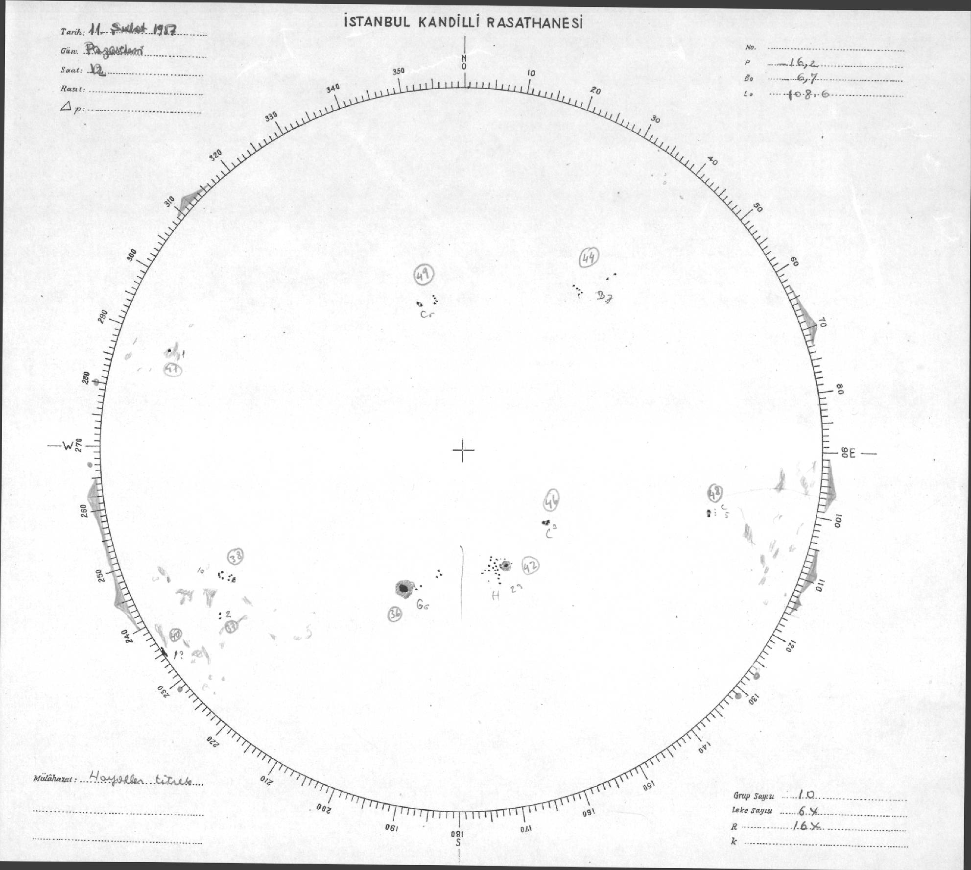 Güneş Lekesi Çizimi - 11.02.1957
