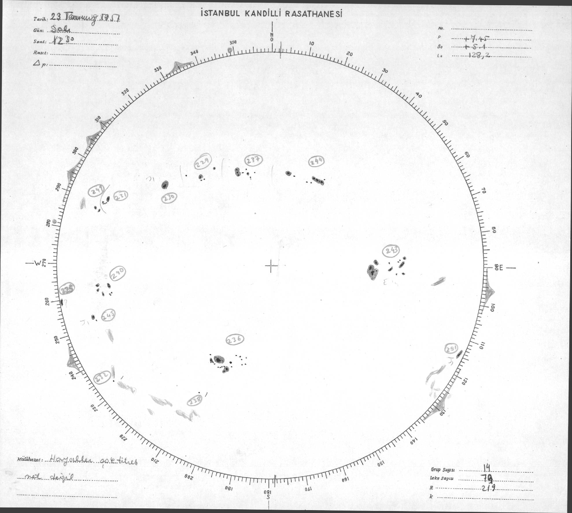 Güneş Lekesi Çizimi - 23.07.1957
