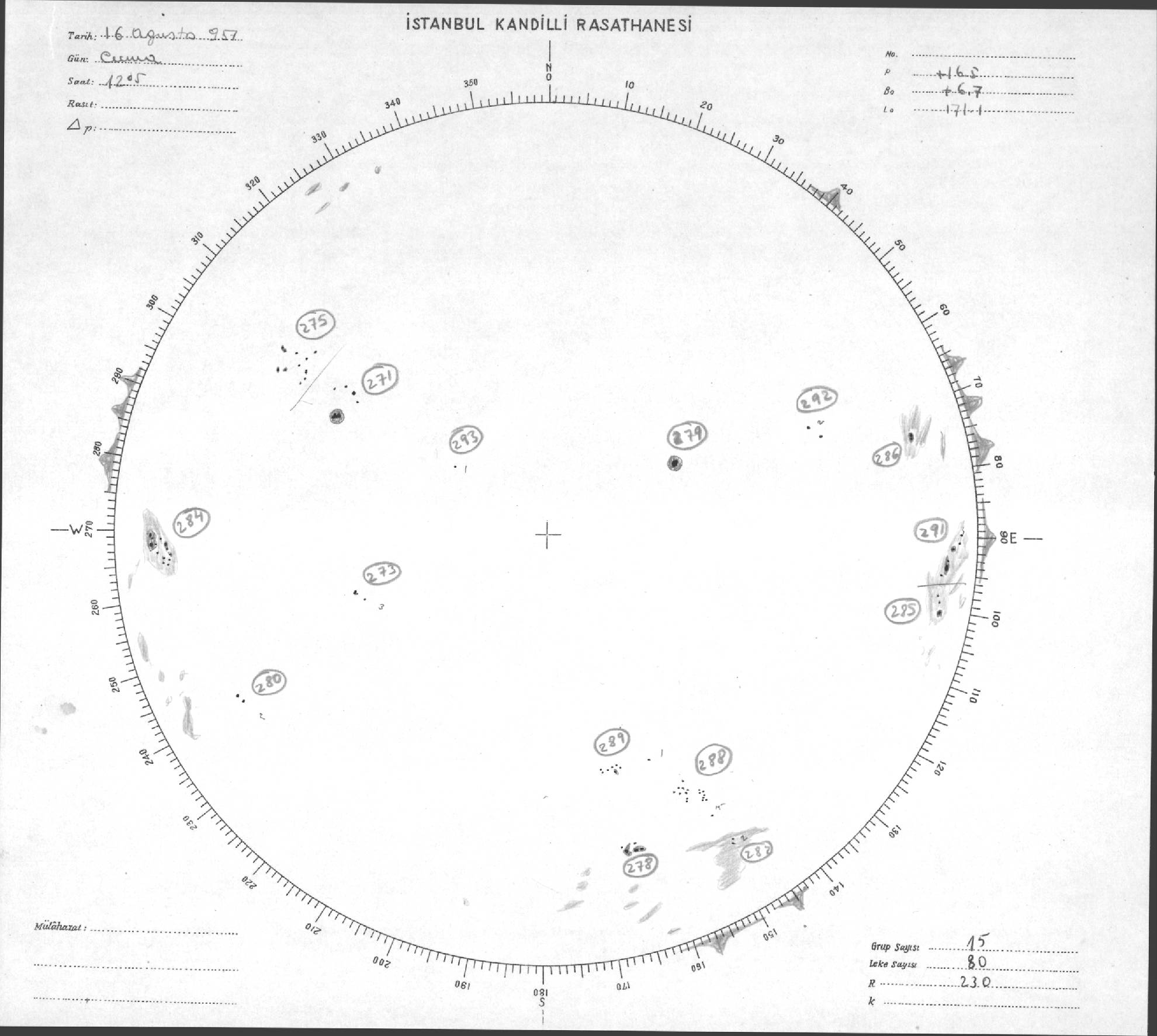 Güneş Lekesi Çizimi - 16.08.1957