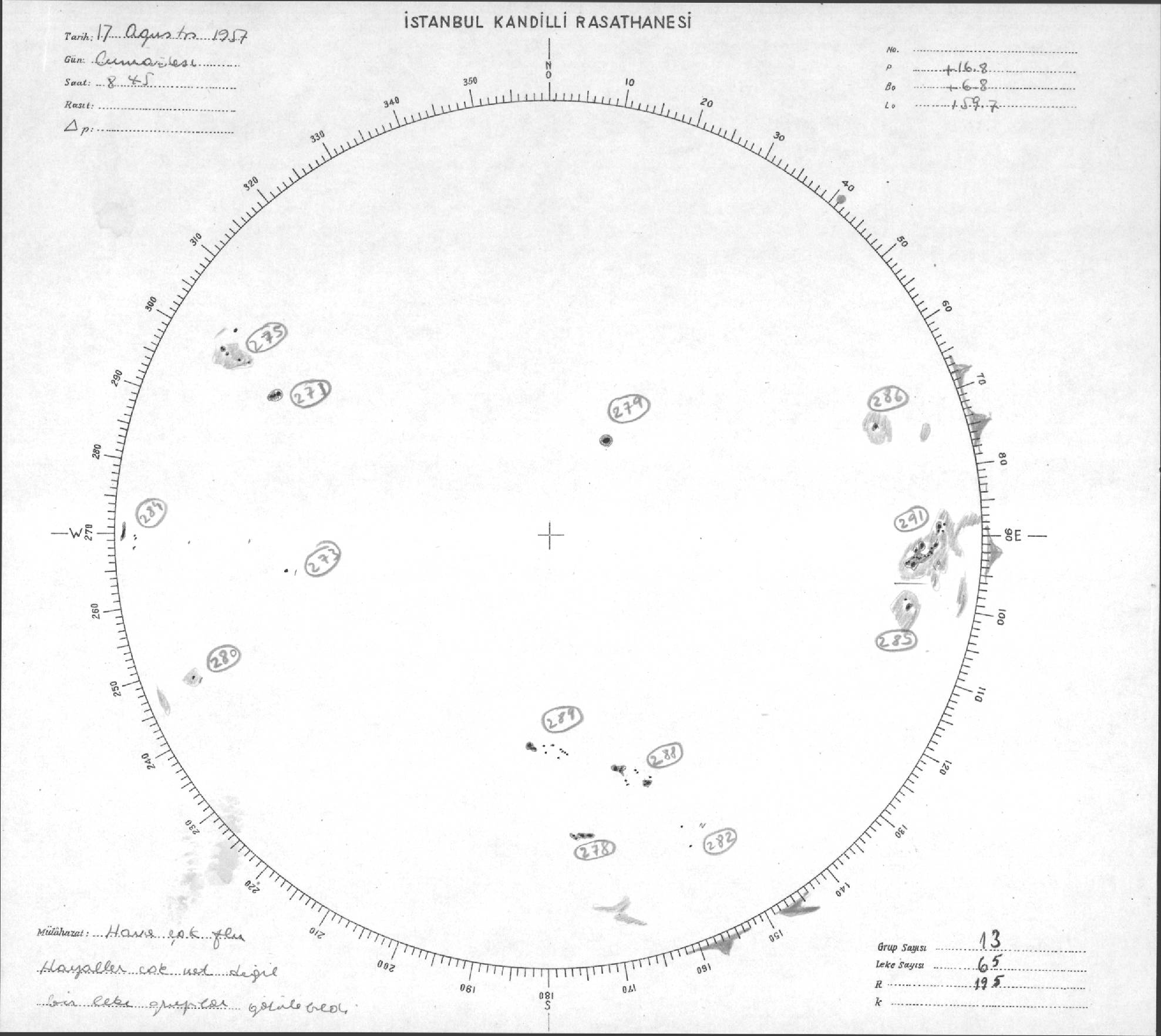 Güneş Lekesi Çizimi - 17.08.1957