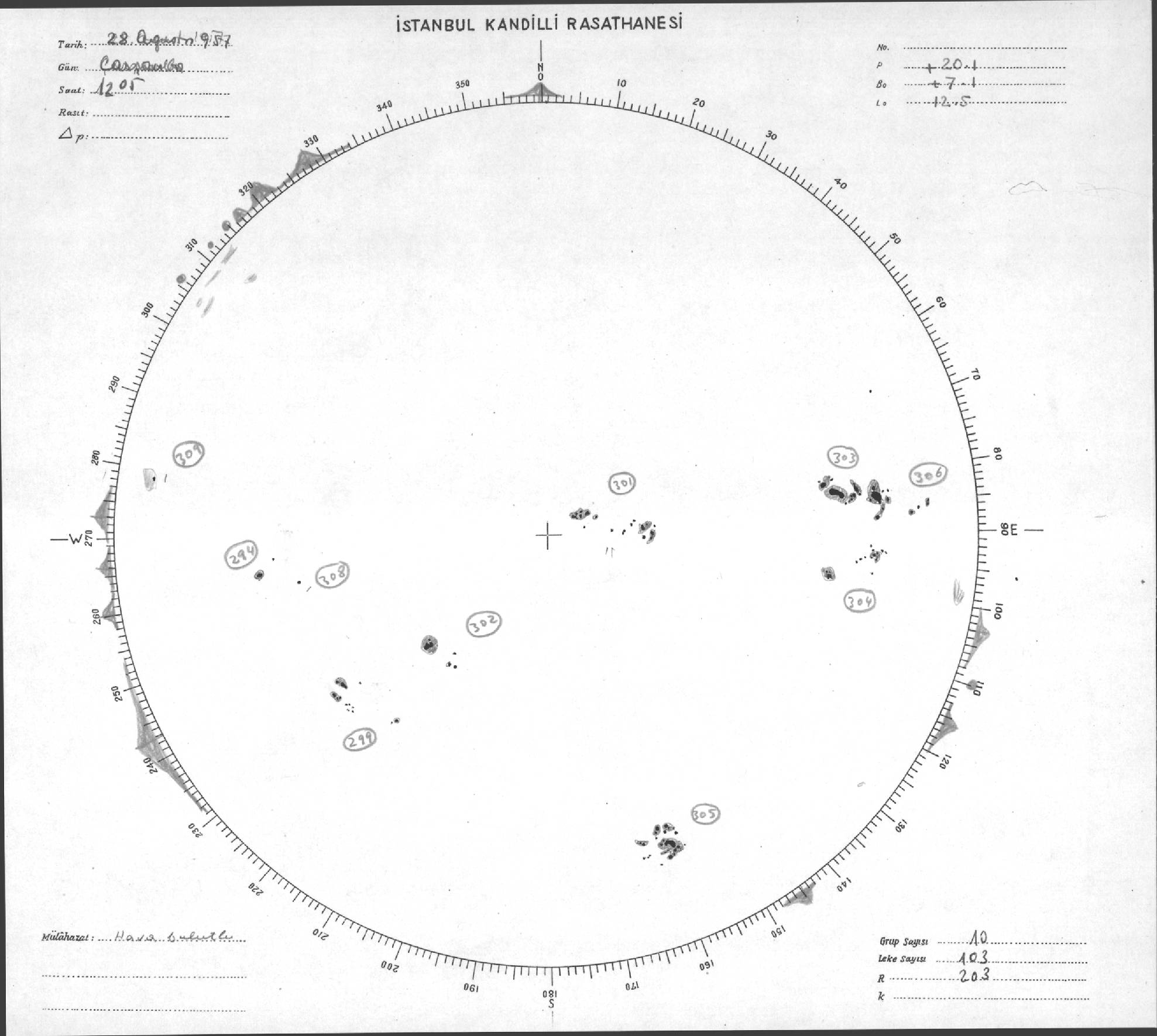 Güneş Lekesi Çizimi - 28.08.1957