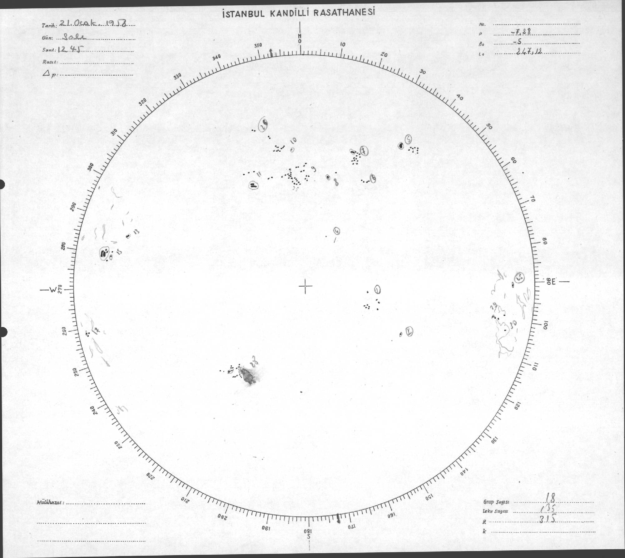 Güneş Lekesi Çizimi - 22.01.1958
