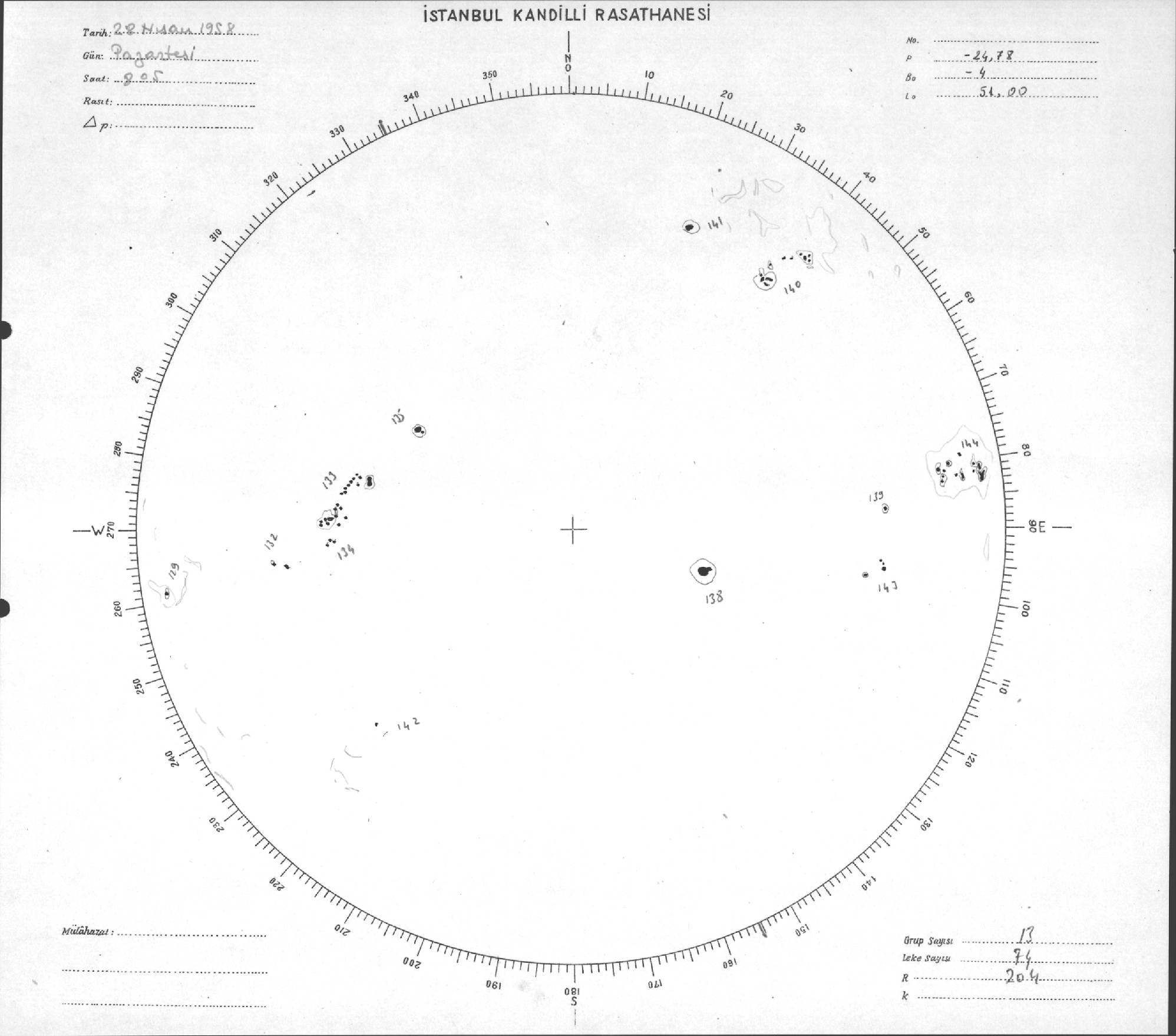 Güneş Lekesi Çizimi - 28.04.1958