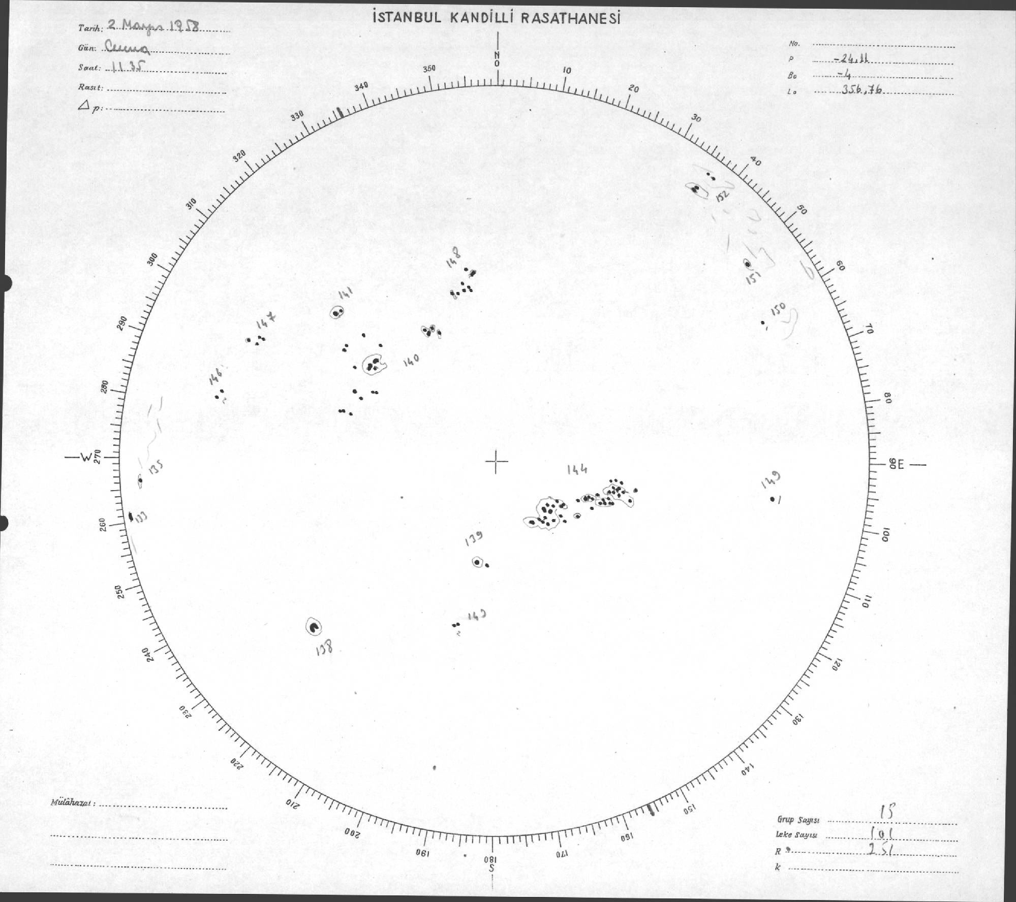 Güneş Lekesi Çizimi - 02.05.1958