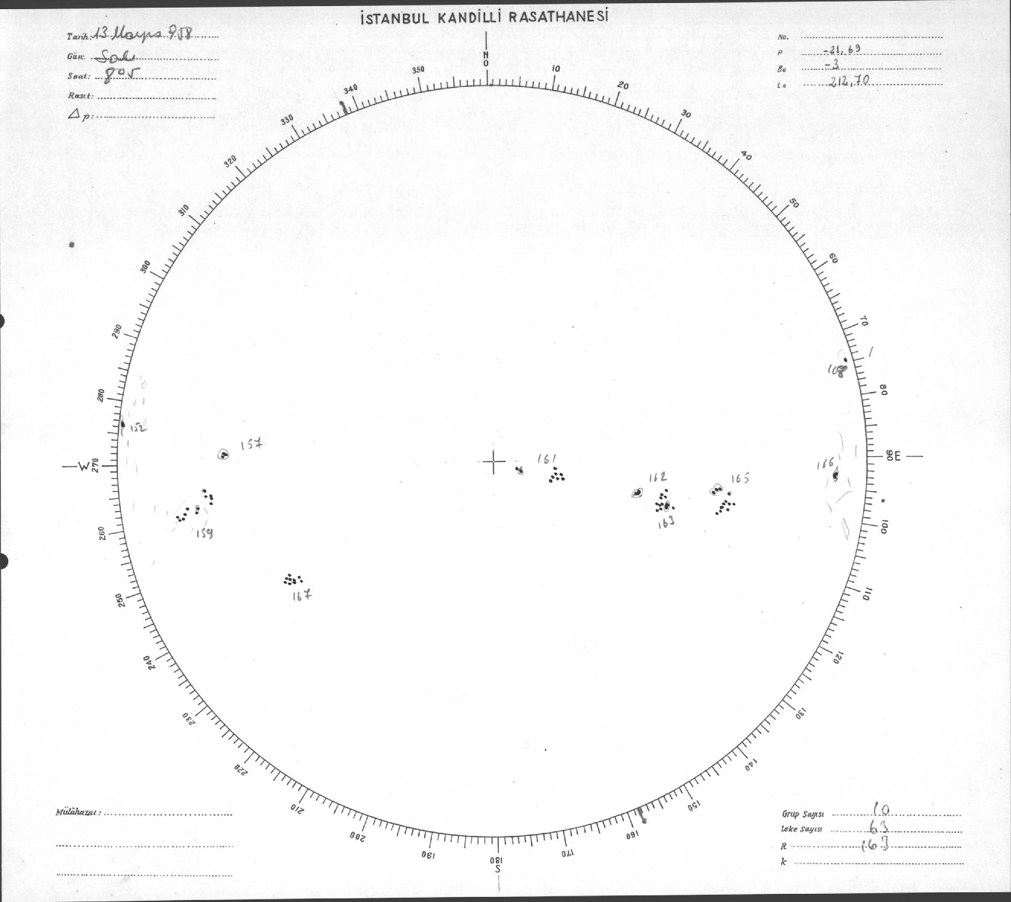 Güneş Lekesi Çizimi - 13.05.1958