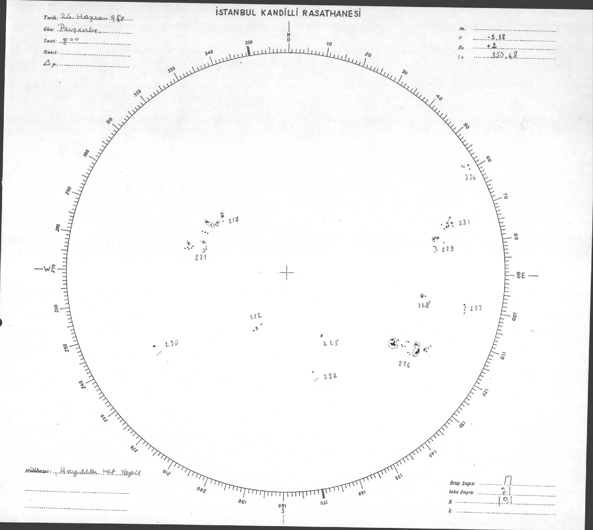 Güneş Lekesi Çizimi - 26.06.1958