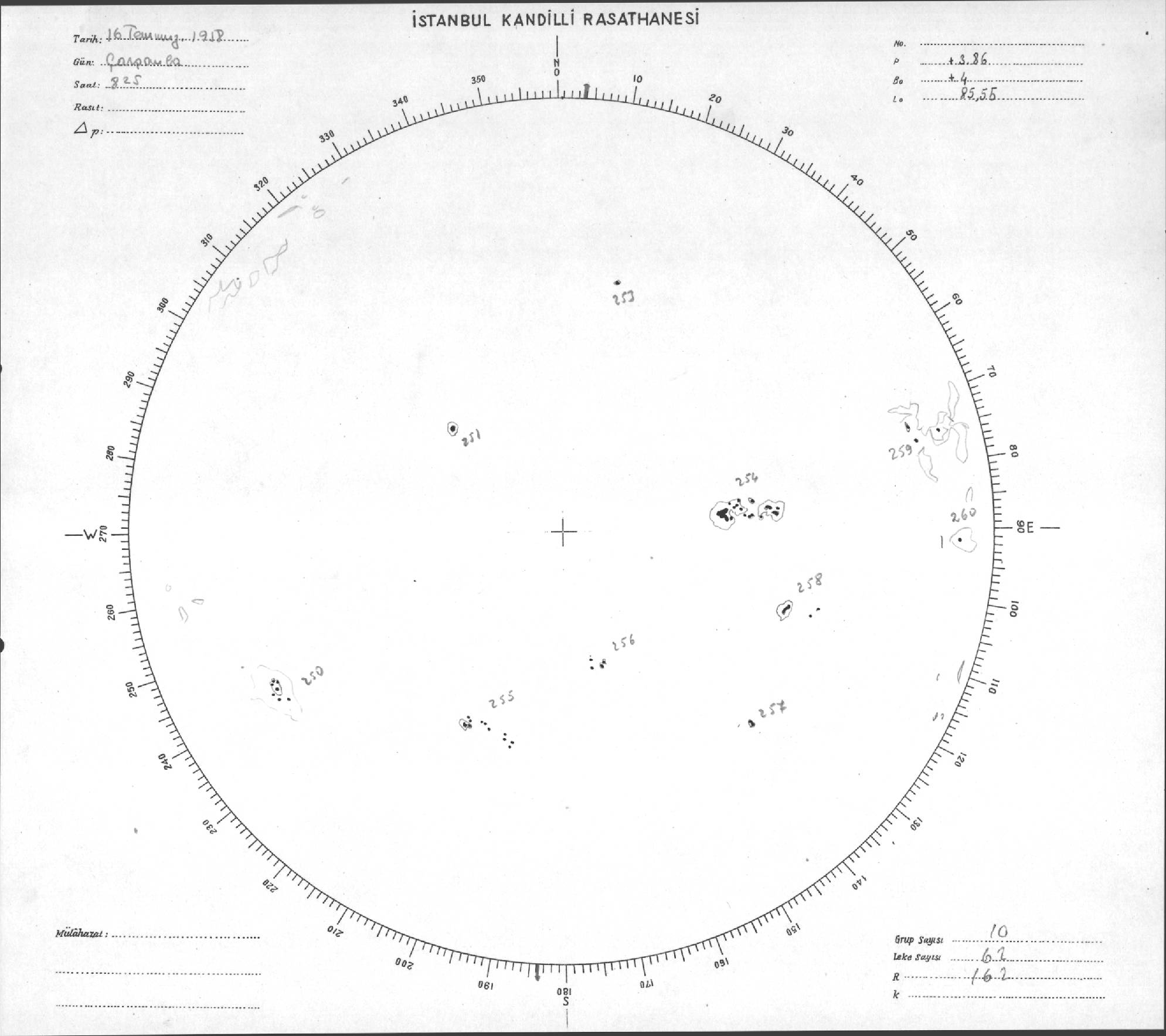 Güneş Lekesi Çizimi - 16.07.1958