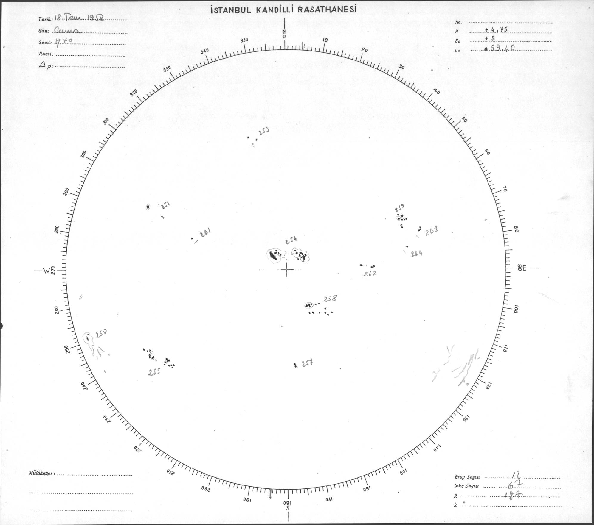 Güneş Lekesi Çizimi - 18.07.1958