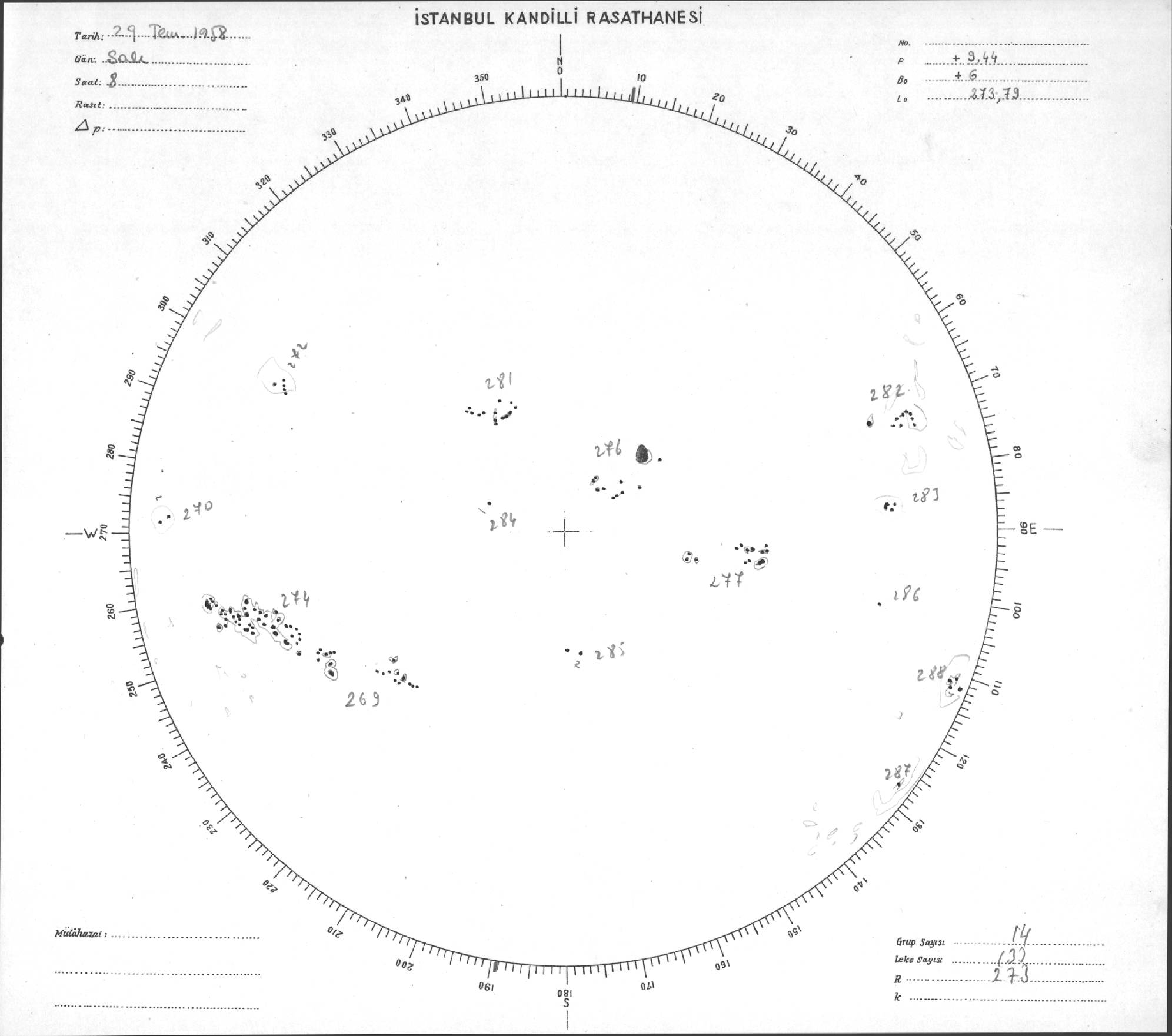 Güneş Lekesi Çizimi - 29.07.1958