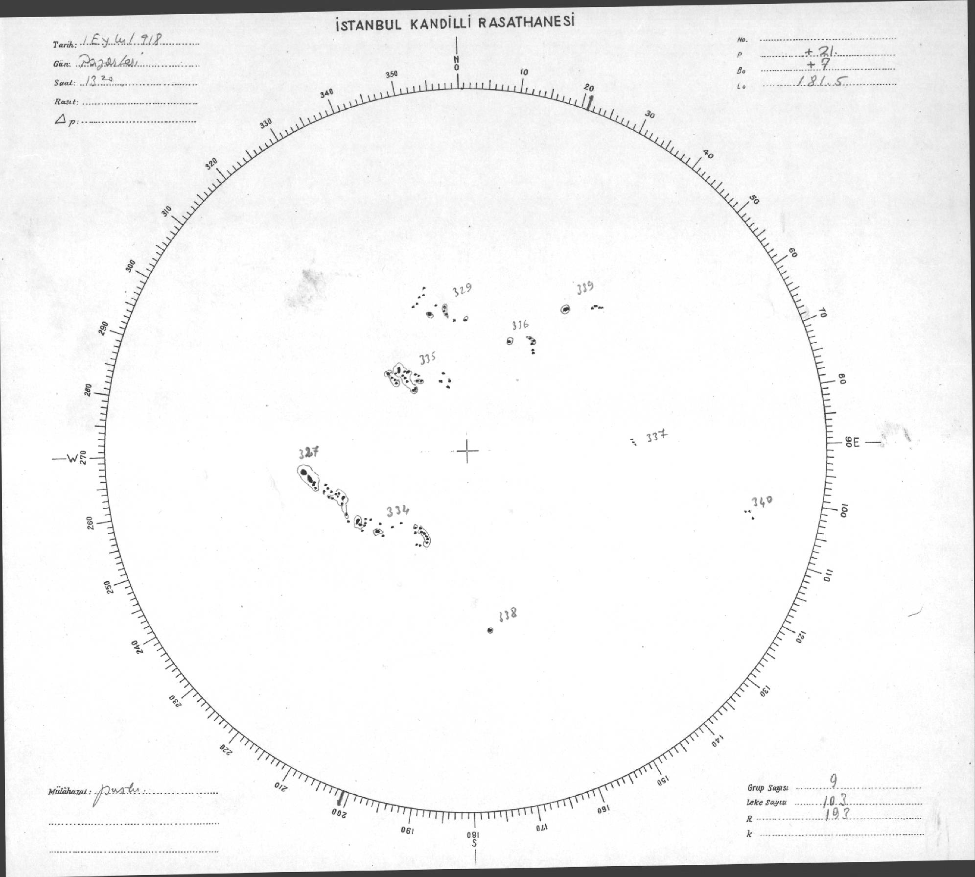 Güneş Lekesi Çizimi - 01.09.1958