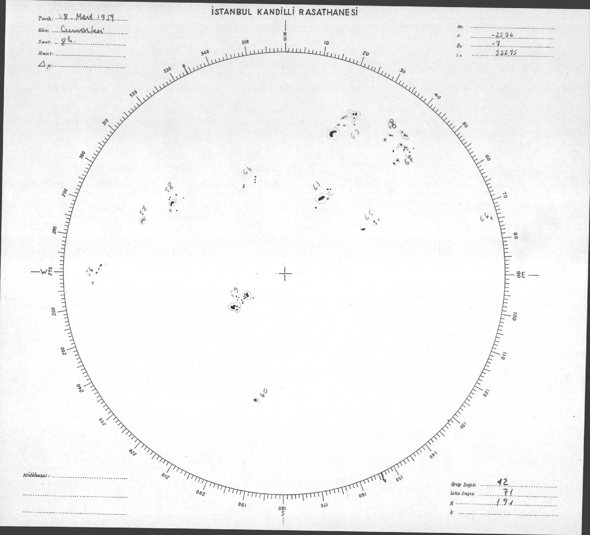 Güneş Lekesi Çizimi - 28.03.1959