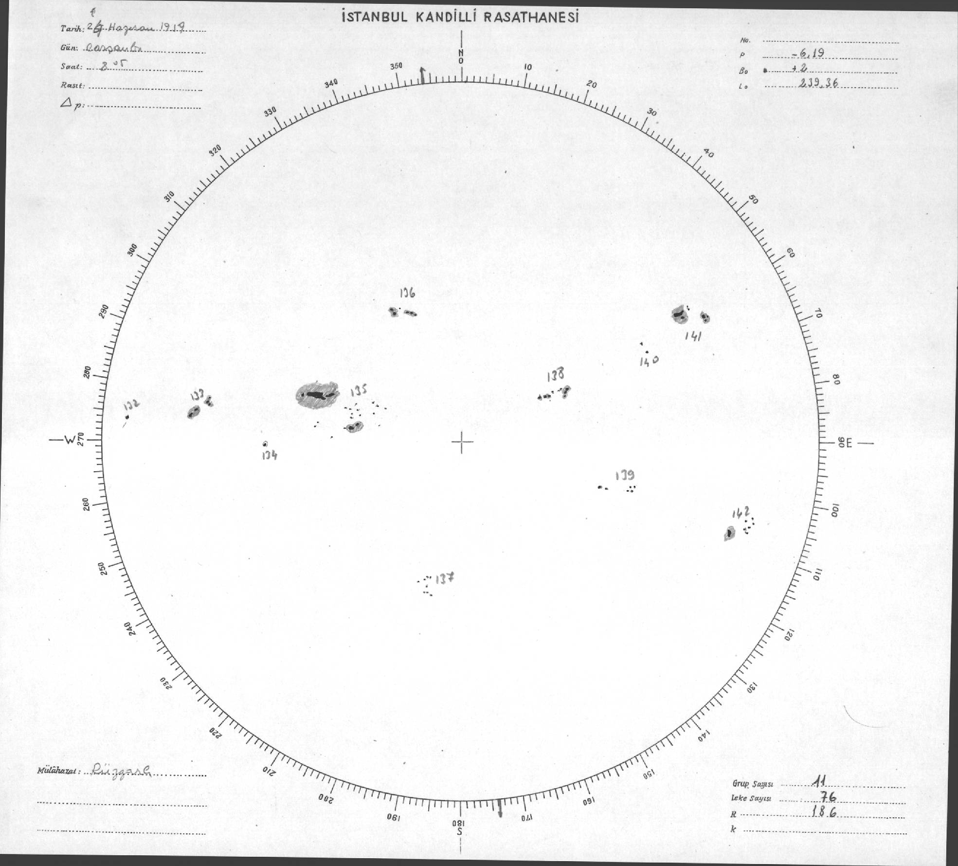 Güneş Lekesi Çizimi - 24.06.1959
