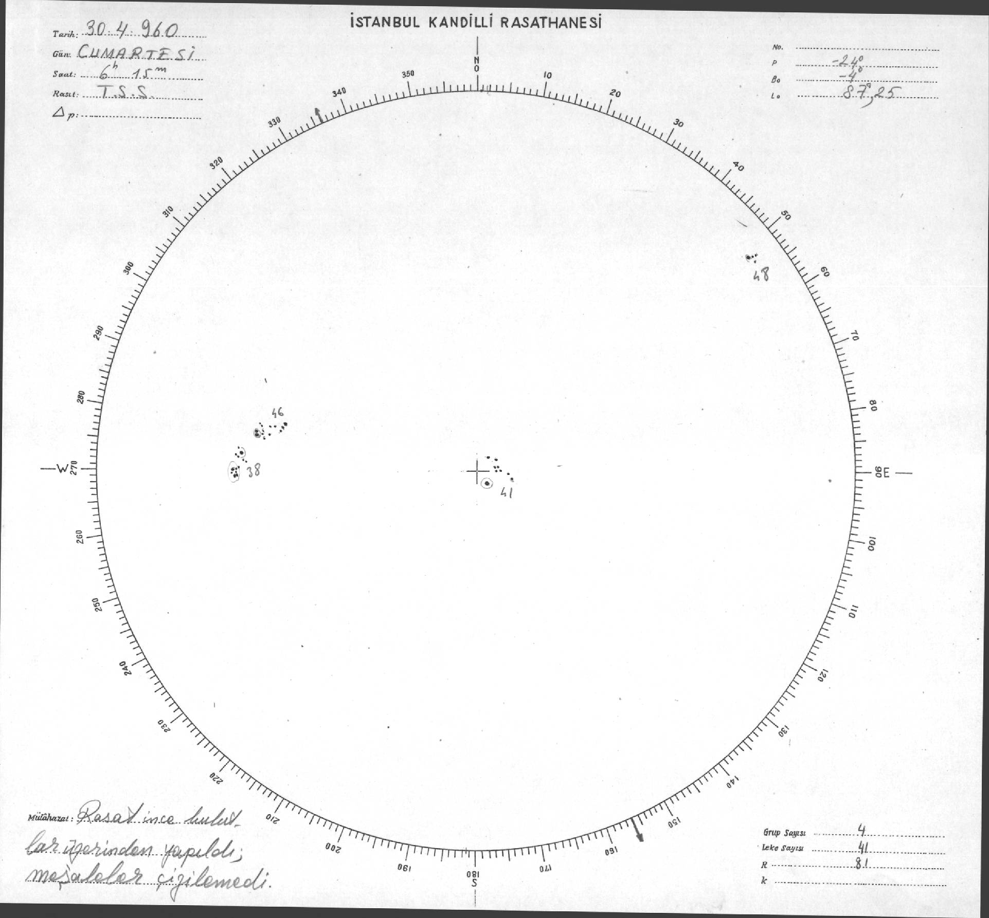 Güneş Lekesi Çizimi - 30.04.1960