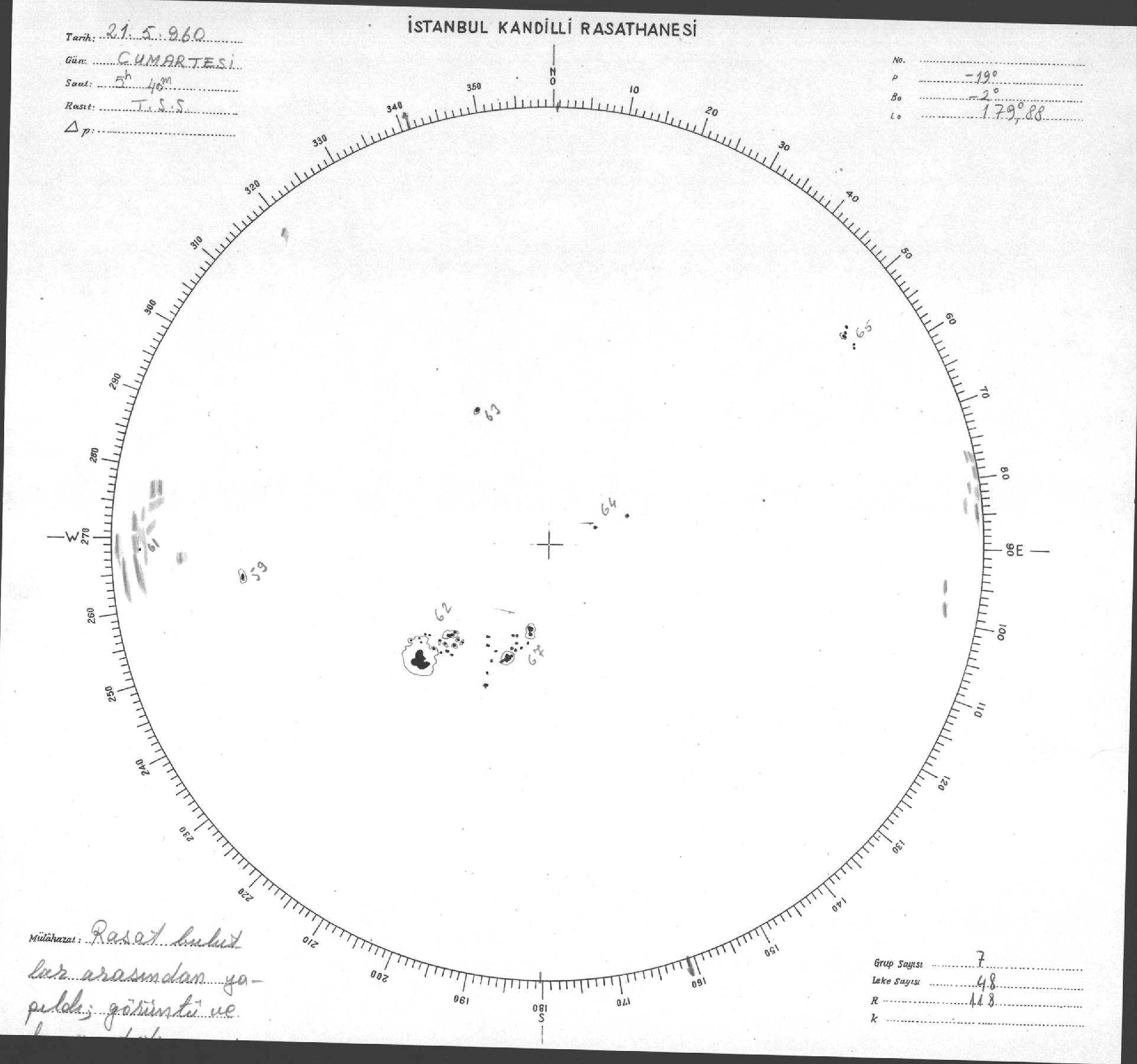 Güneş Lekesi Çizimi - 21.05.1960