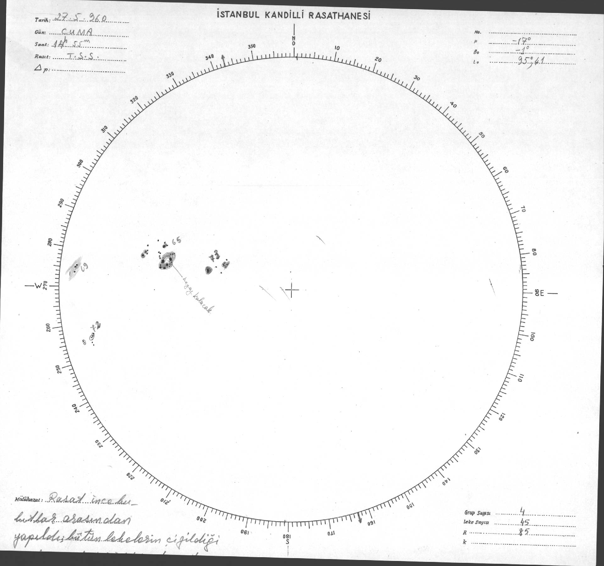 Güneş Lekesi Çizimi - 27.05.1960