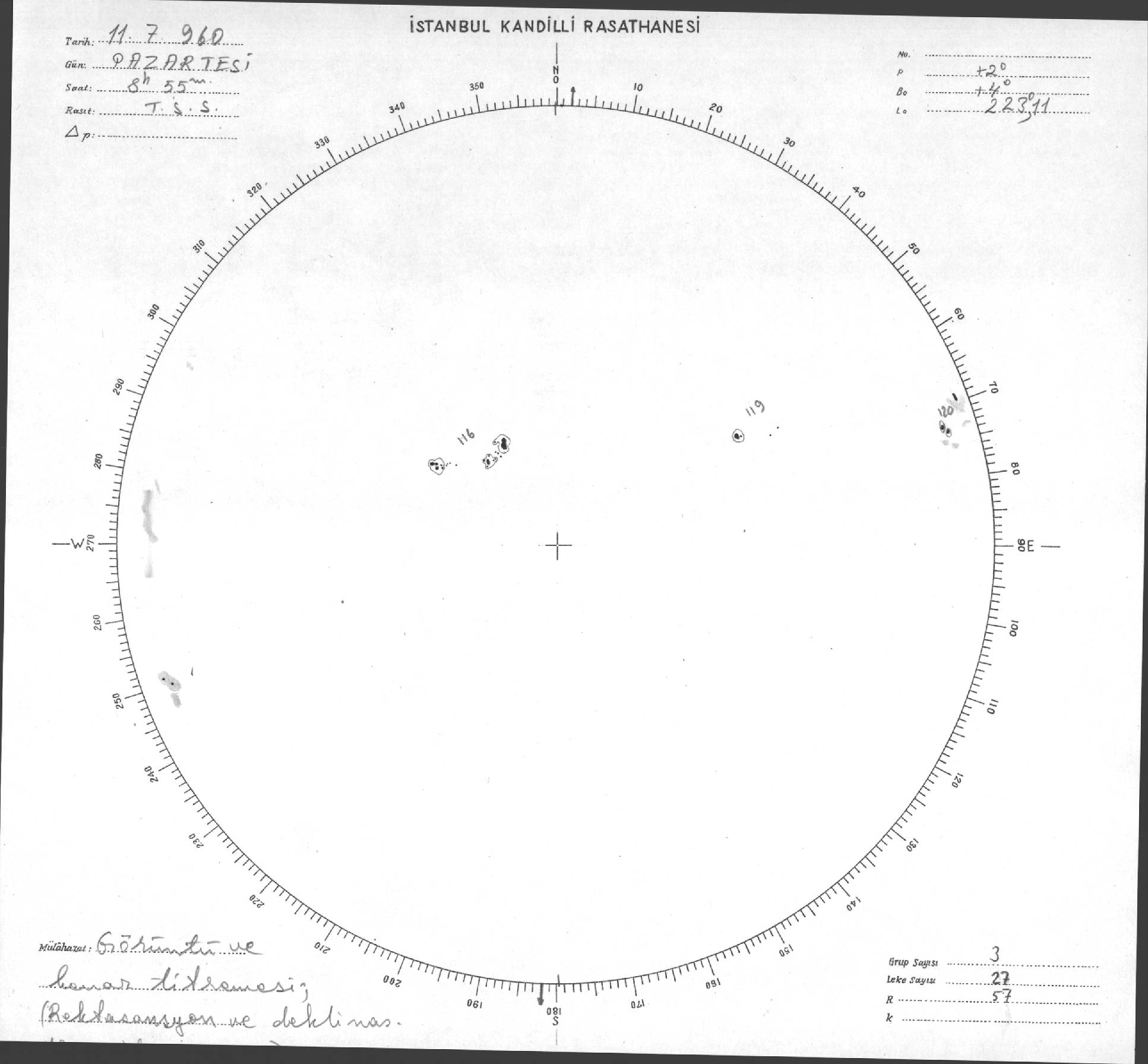 Güneş Lekesi Çizimi - 11.07.1960