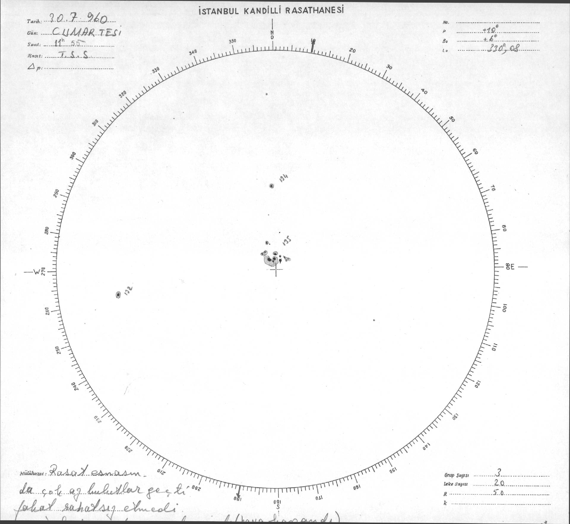 Güneş Lekesi Çizimi - 30.07.1960