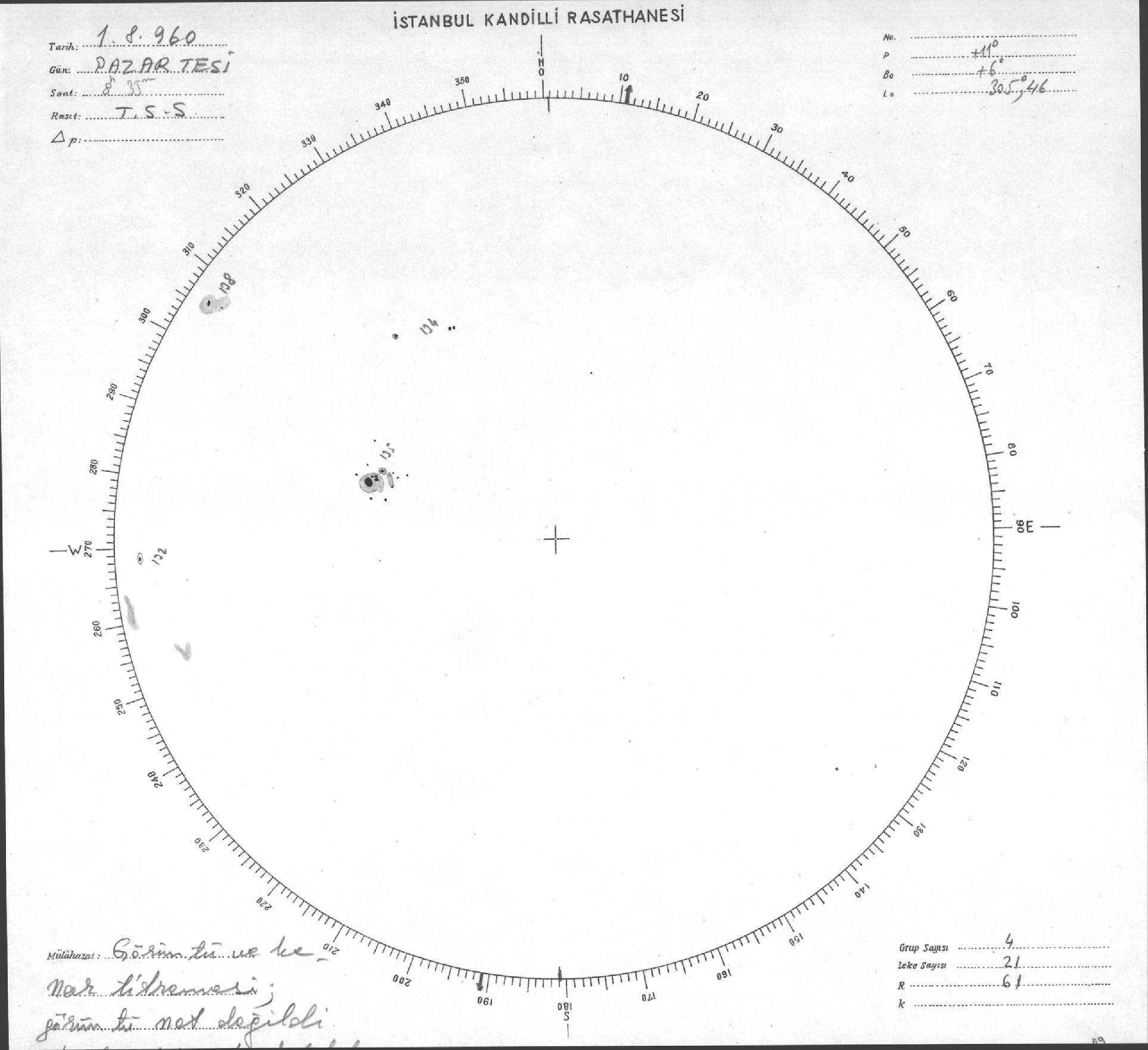 Güneş Lekesi Çizimi - 01.08.1960