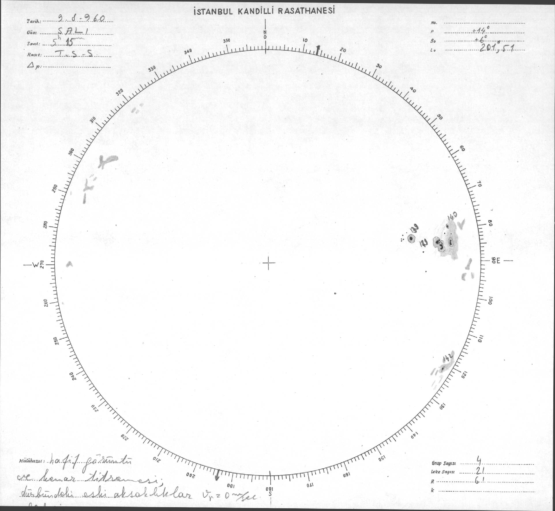 Güneş Lekesi Çizimi - 09.08.1960