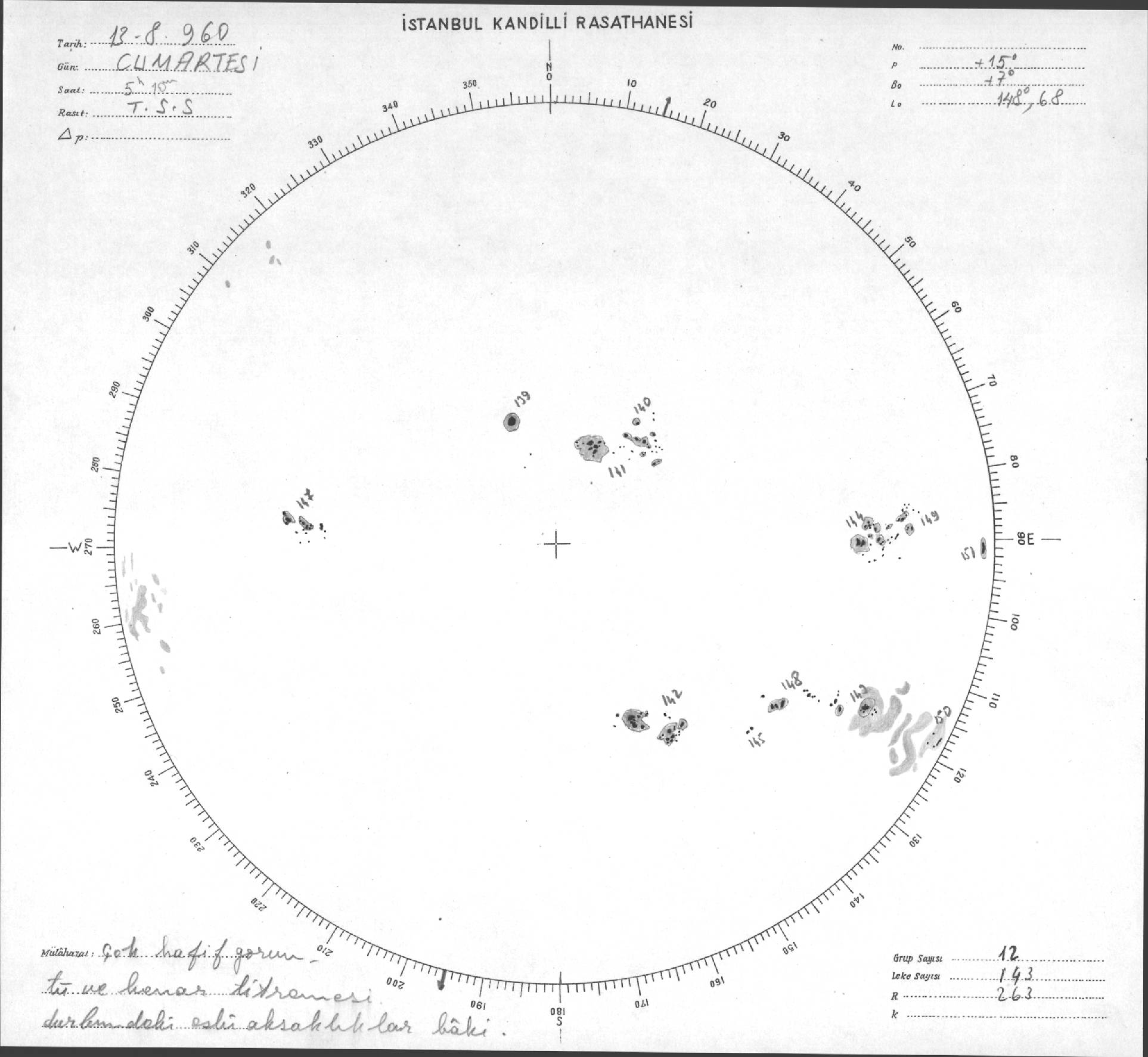 Güneş Lekesi Çizimi - 13.08.1960