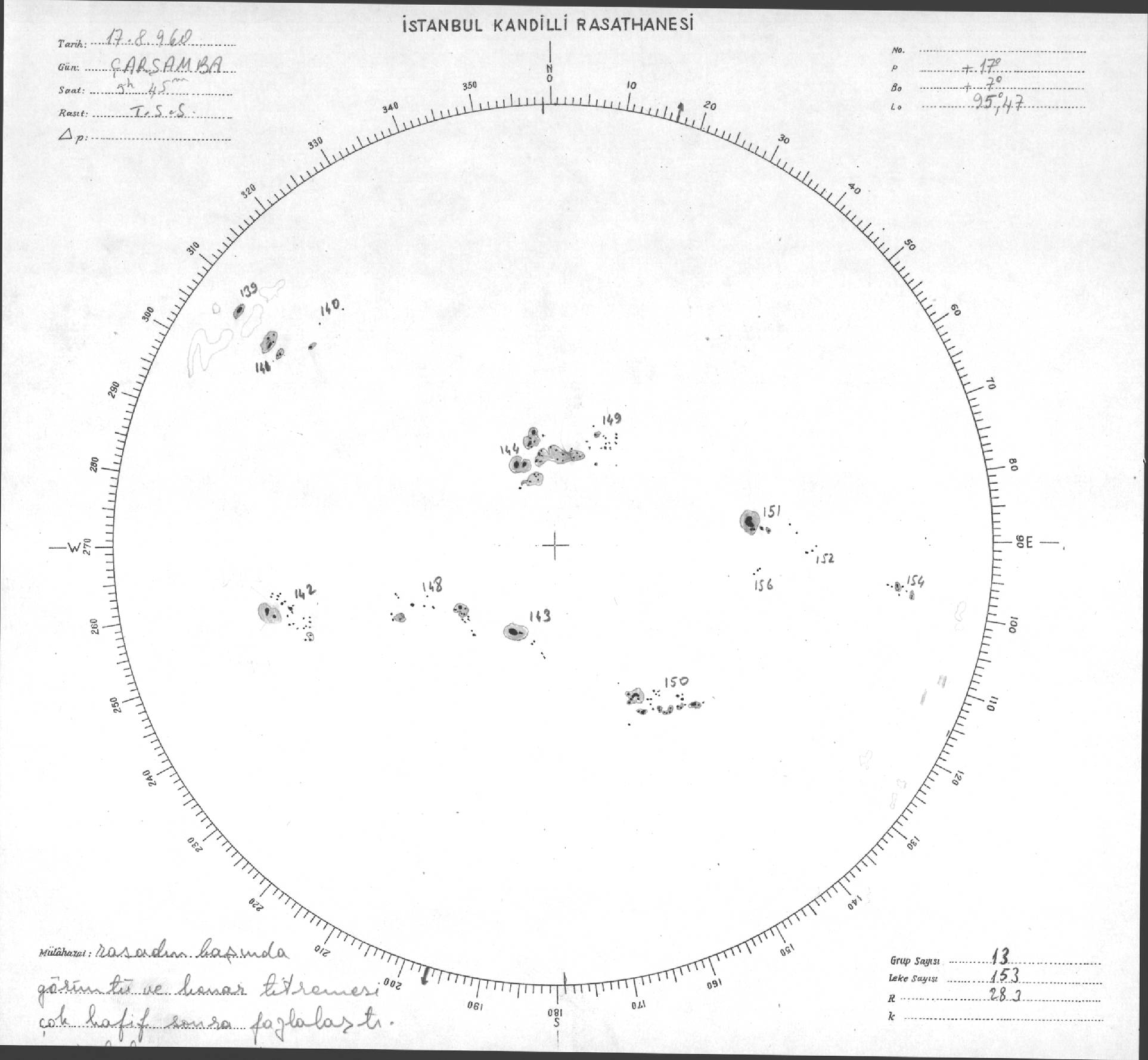 Güneş Lekesi Çizimi - 17.08.1960