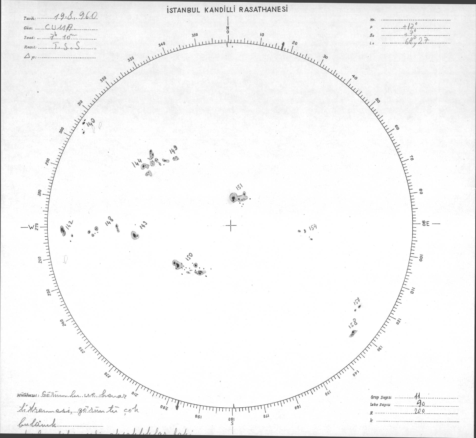 Güneş Lekesi Çizimi - 19.08.1960