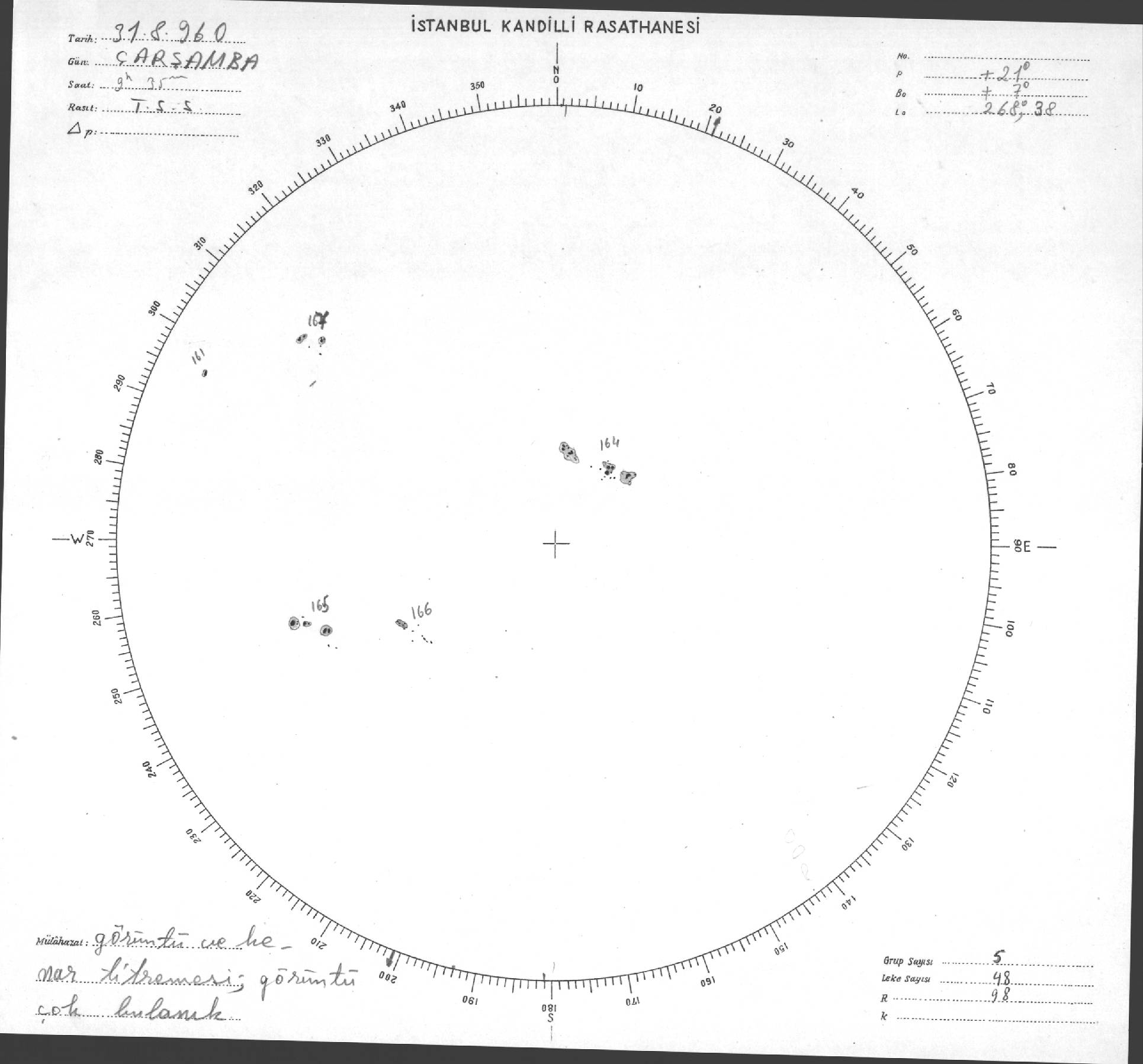Güneş Lekesi Çizimi - 31.08.1960