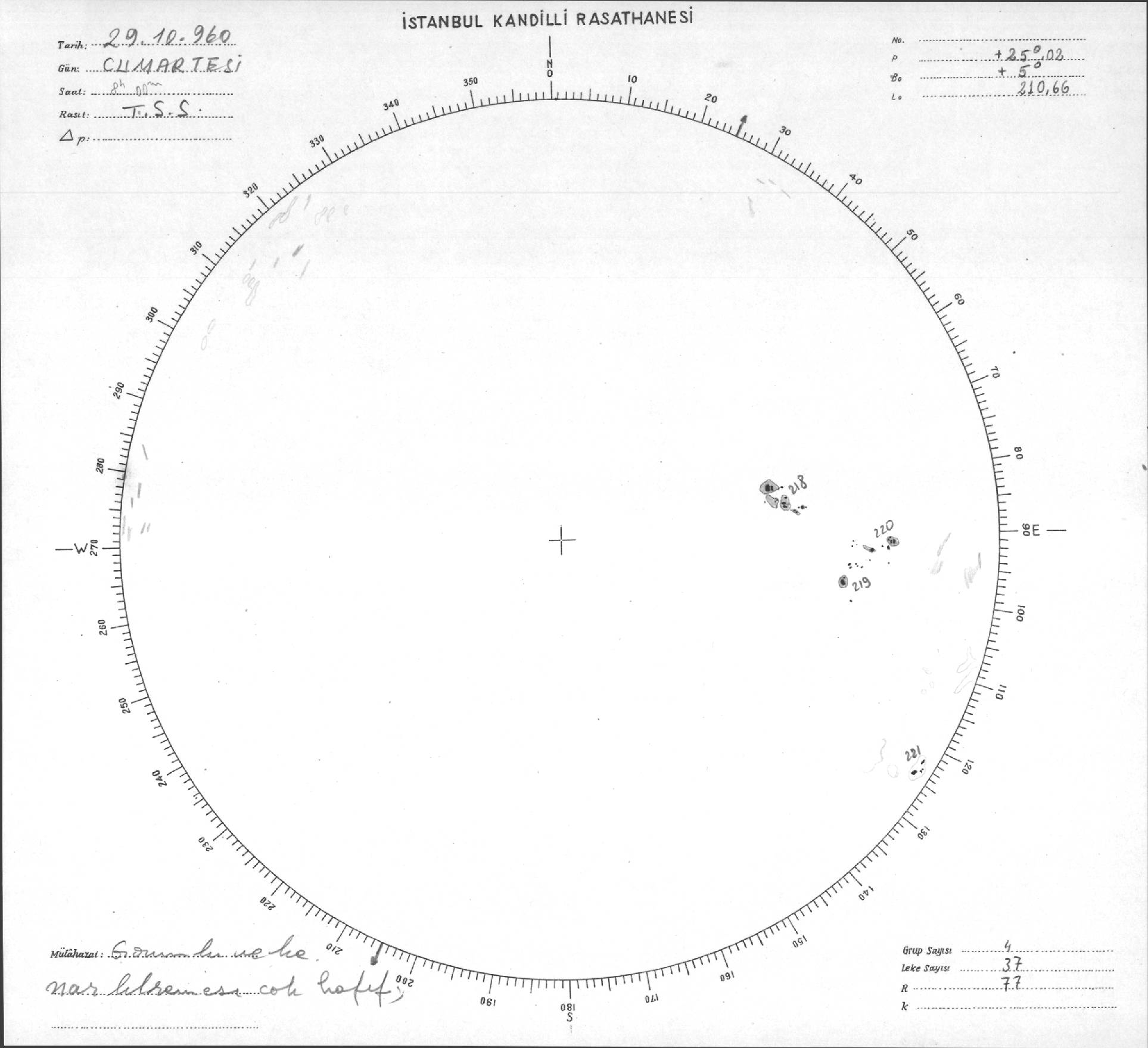 Güneş Lekesi Çizimi - 29.10.1960