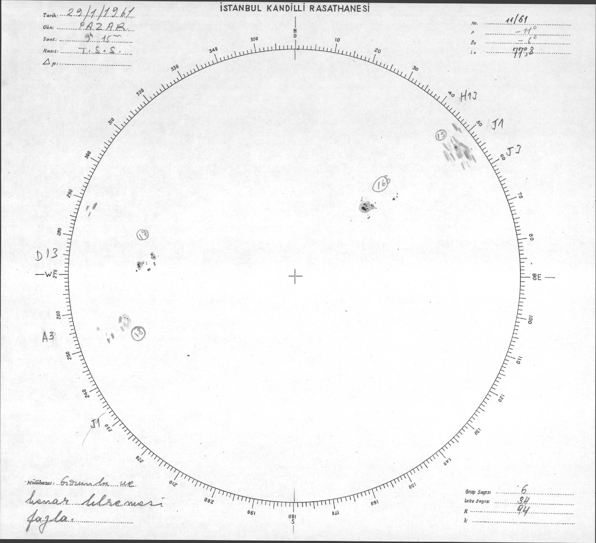 Güneş Lekesi Çizimi - 29.01.1961