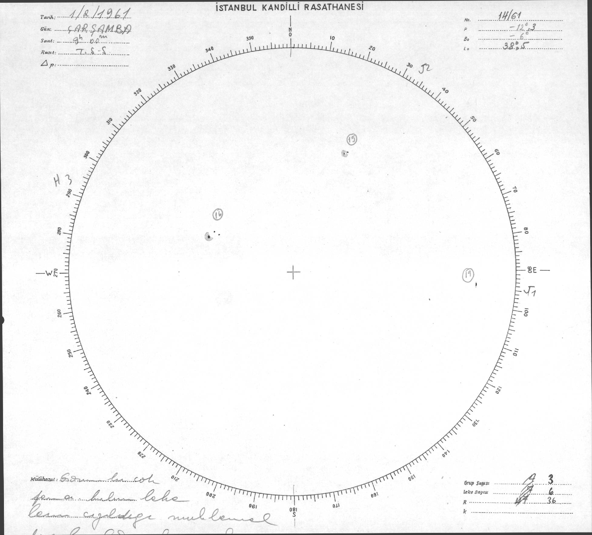 Güneş Lekesi Çizimi - 01.02.1961