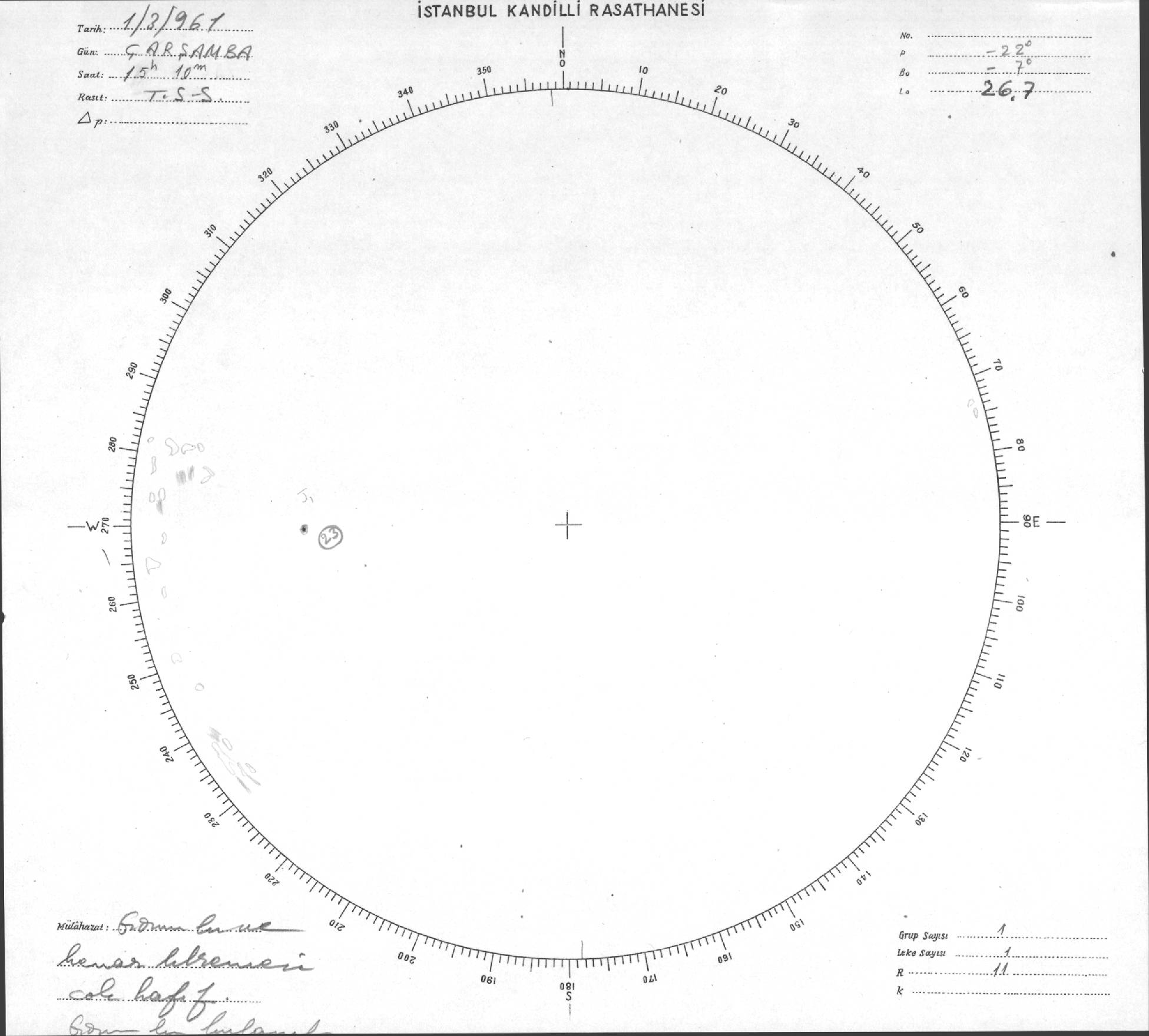 Güneş Lekesi Çizimi - 01.03.1961