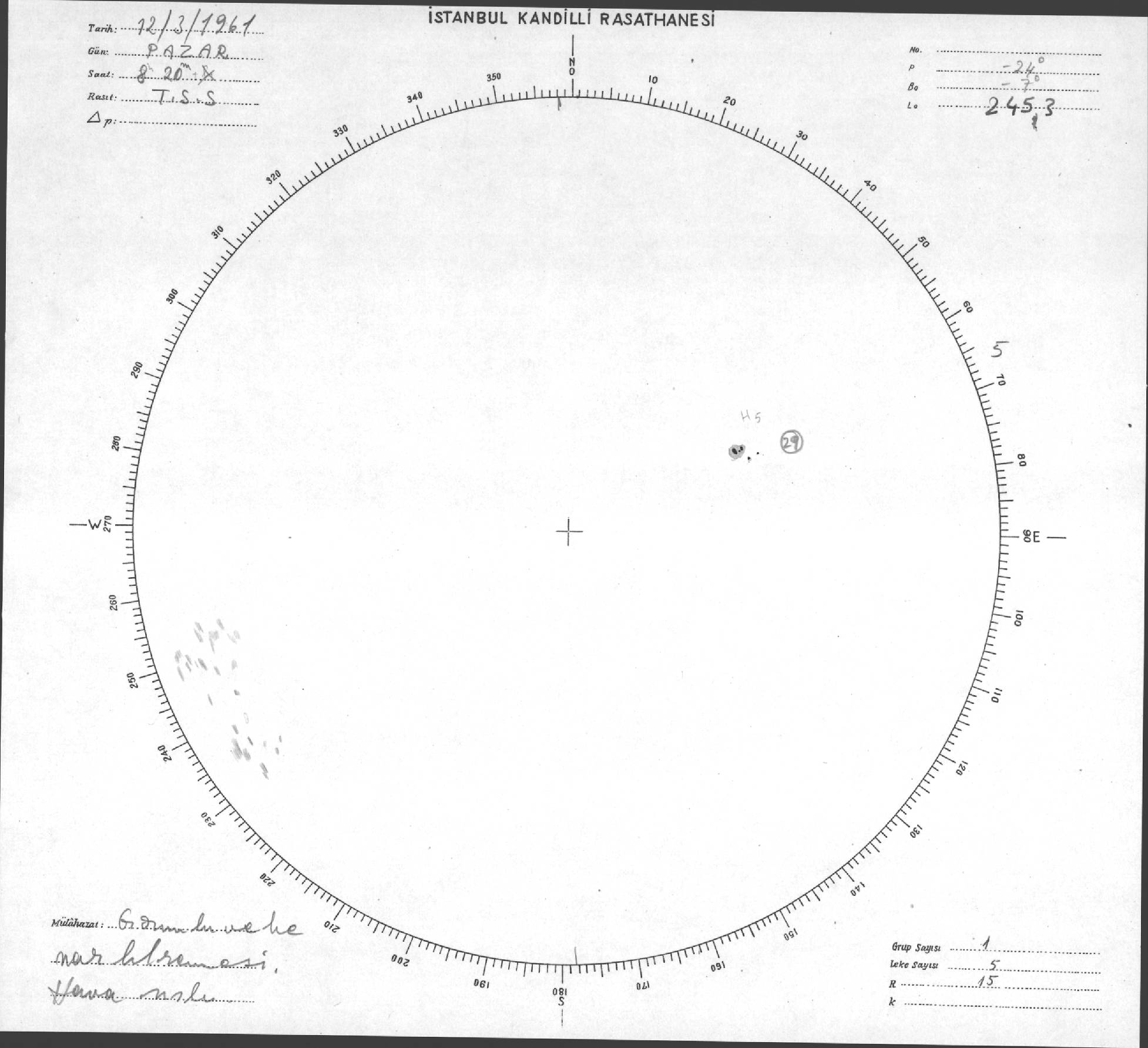 Güneş Lekesi Çizimi - 12.03.1961