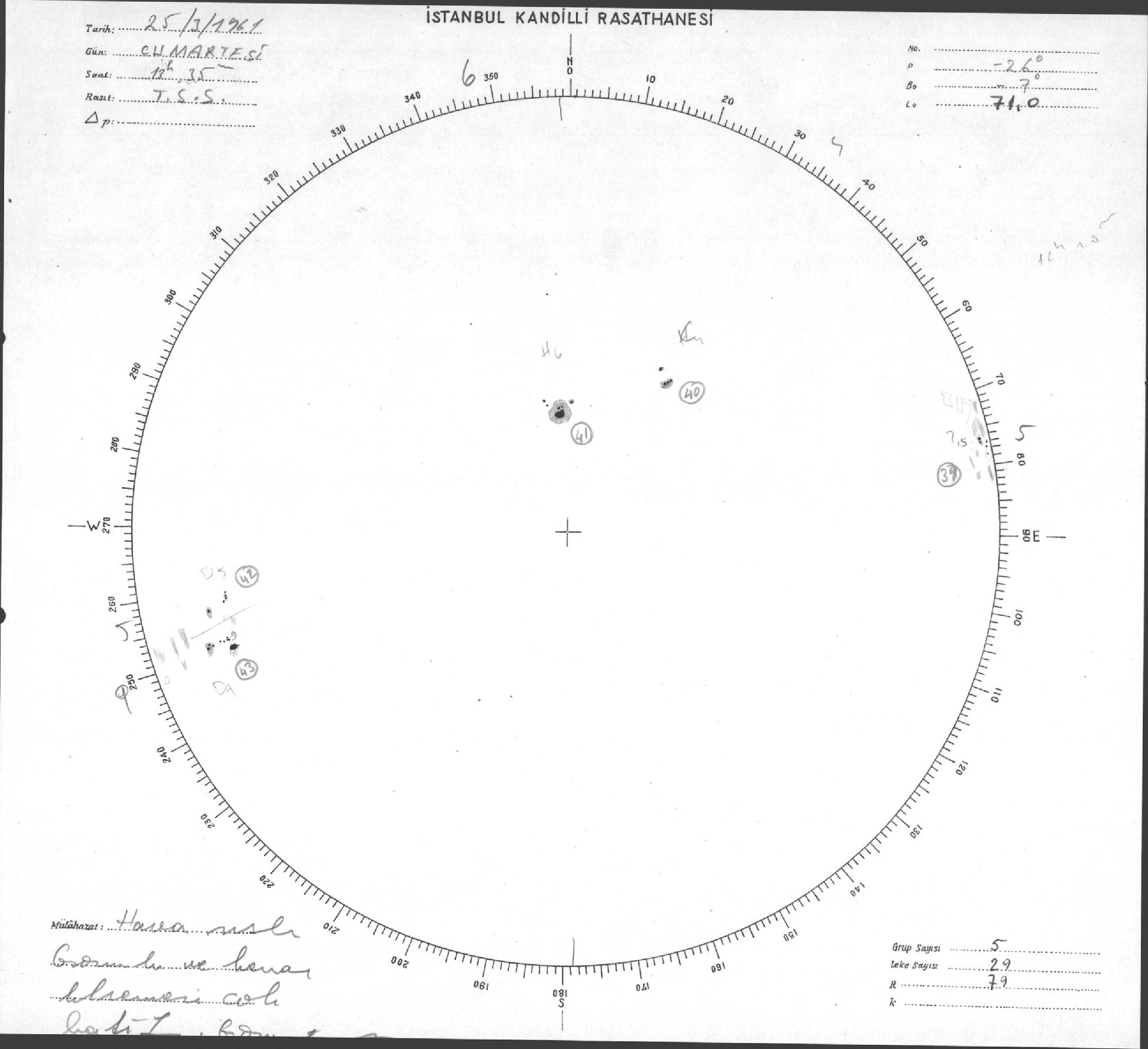 Güneş Lekesi Çizimi - 25.03.1961