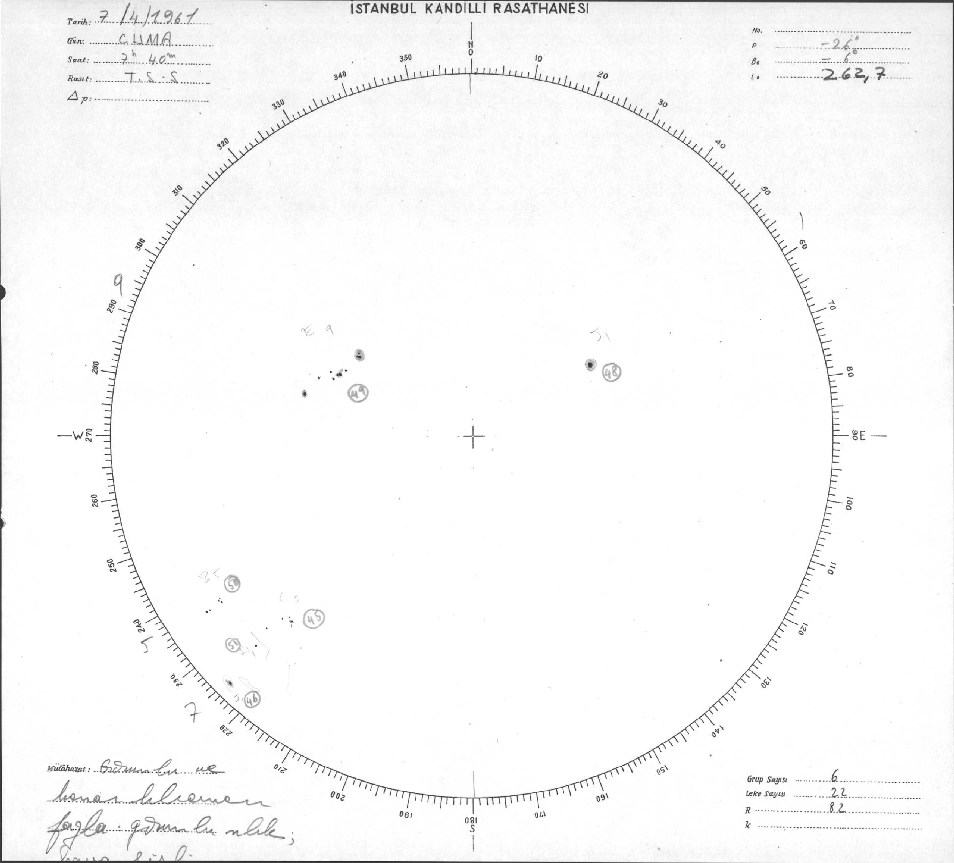 Güneş Lekesi Çizimi - 07.04.1961